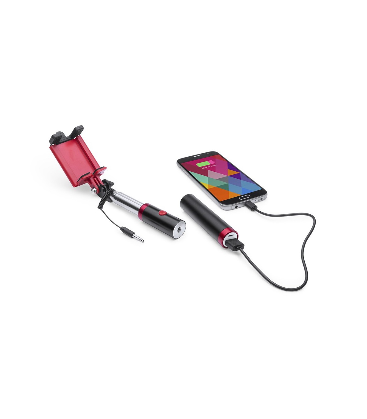 Palo selfie con batería de 2.200 mAh de capacidad de carga anclada al mango y fácilmente extraíble para su recarga -cable micro USB incluido-. Compatible con cualquier tipo de smartphone, dispone de recorrido plegable de acero inox con sistema antigiro y disparador en mango con conexión jack de 3,5mm, además de un sistema de almohadillas en el soporte para así ofrecer un óptimo ajuste y protección del smartphone, además de una tuerca de ajuste a fijar según la inclinación que se desee, para así hacerse selfies todavía más variados y divertidos. Accesorios en color a juego, amplia superficie de marcaje en la parte trasera del soporte para smartphone y, además, viene presentado en atractiva caja de diseño. Las capacidades mostradas en todas nuestras baterías auxiliares externas son reales, incorporando todas ellas baterías de grado A y no recicladas, con una vida útil de al menos 500 ciclos de carga y según normativa CE. Además, están fabricadas conforme a los estándares RoHS y en cumplimiento con los siguientes requisitos de seguridad: Sistema de protección contra sobrecarga del power bank. Sistema de protección contra descarga completa que proporciona una mayor durabilidad del power bank. Sistema de bloqueo para evitar cortocircuitos. Sistema de transferencia de carga constante, acorde con la capacidad del dispositivo de destino.