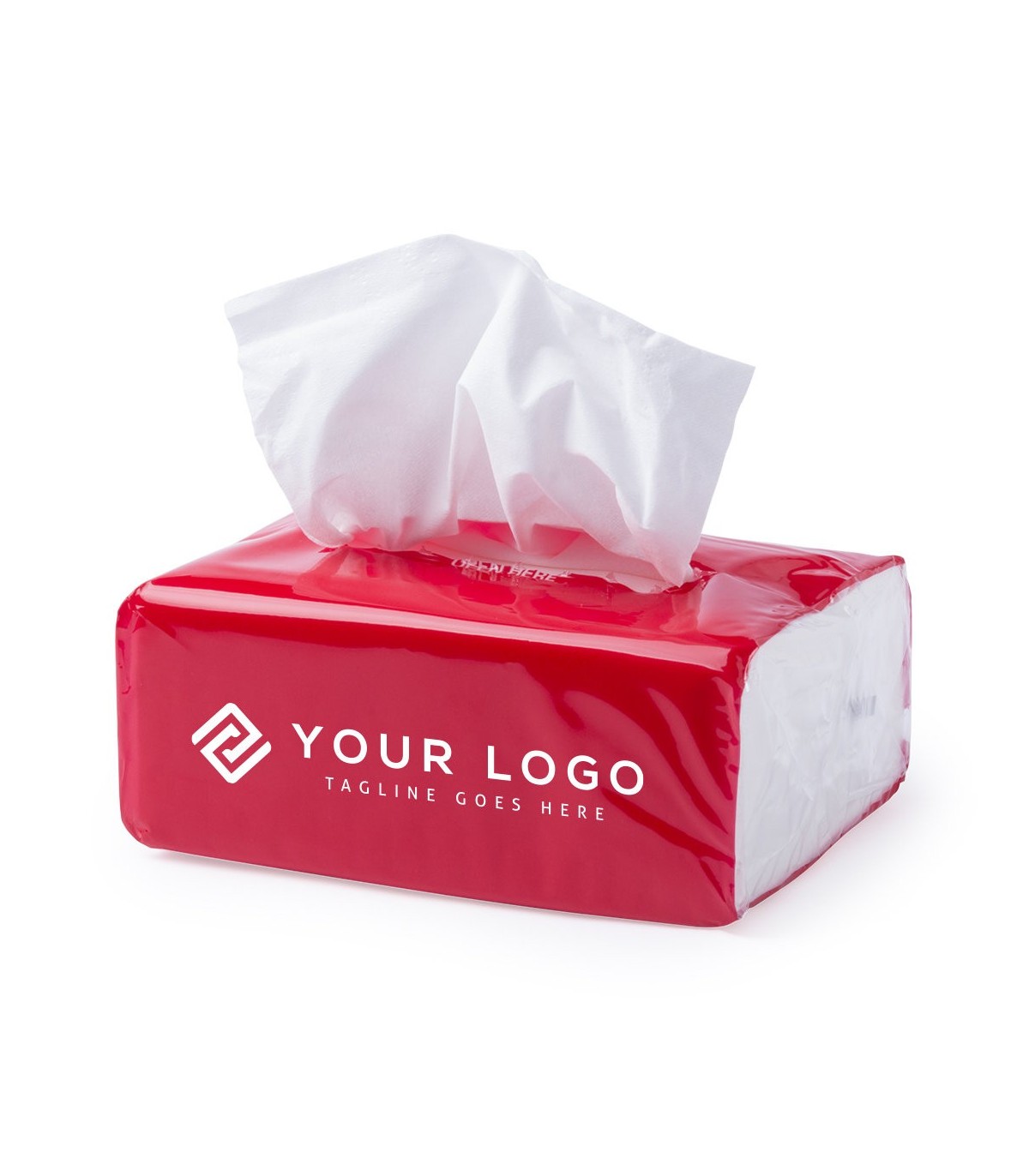 Pañuelos faciales de suave celulosa para personalizar y regalar con logo de empresa como artículos promocionales.