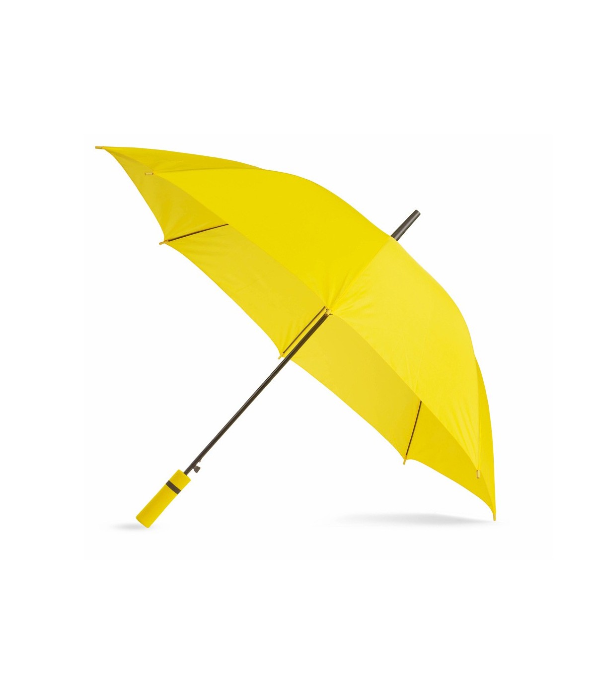 Paraguas de 8 paneles en diferentes colores muy llamativos para elegir y personalizar. De 105 cm de diámetro, con apertura automática y en resistente material poliéster. Con varillas metálicas en color negro, cierre de velcro y suave mango de EVA a juego con accesorios en color negro.