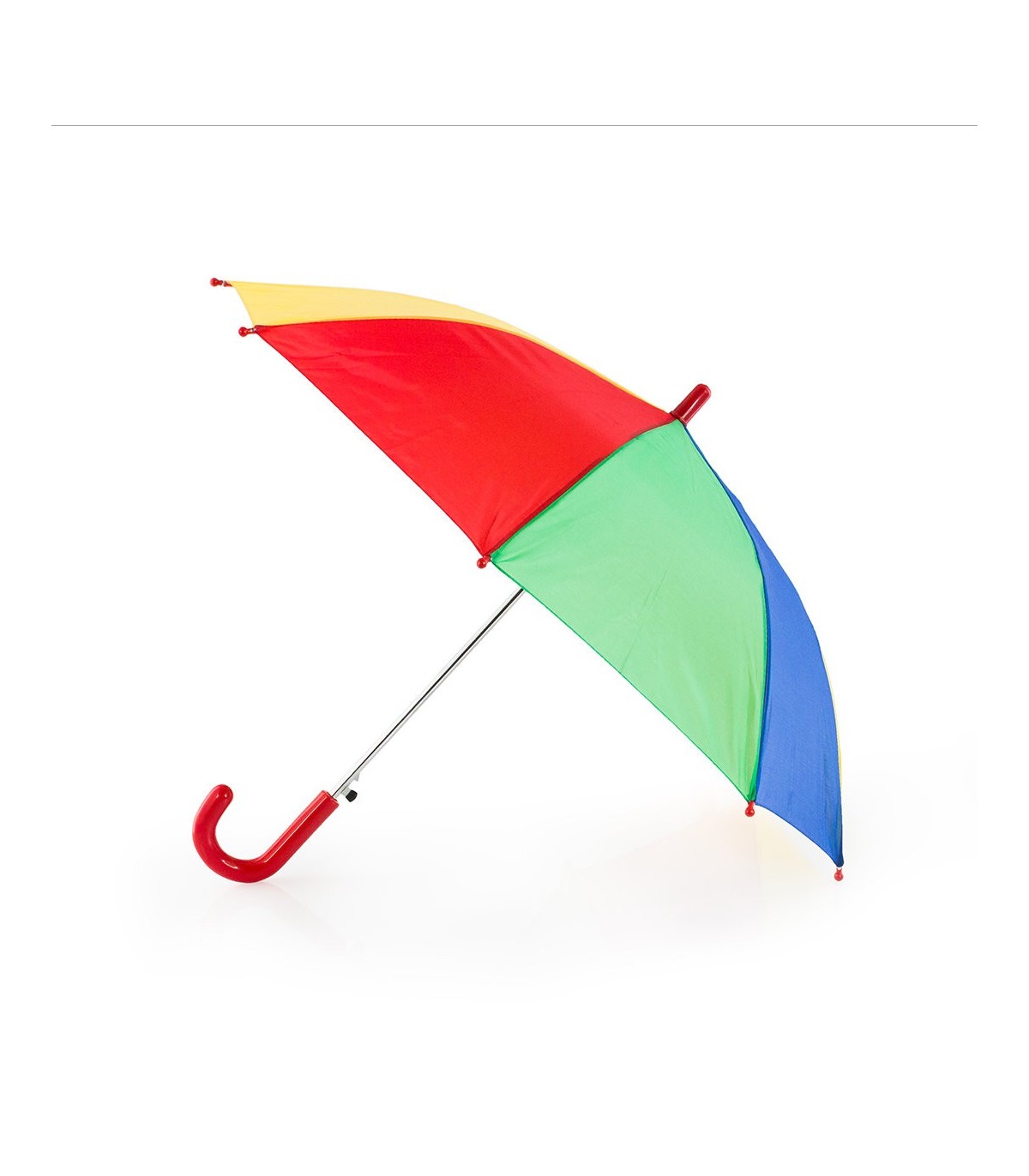 Paraguas de divertido diseño multicolor de 8 paneles y 71cm de diámetro. De apertura automática, con varillas metálicas plateadas y en resistente poliéster.