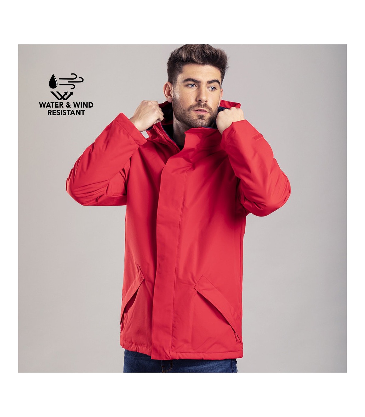 Parka con exterior en suave y resistente poliéster con tratamiento impermeable de vivos colores e interior en cálido polar fleece de 200g/m². Con capucha de cierre de cremallera integrada en cuello y doble cierre principal: de cremallera con cinta en tirador y tapeta de velcro. Con bolsillos laterales de cierre de cremallera con cinta en tirador. Disponible en tallas S, M, L, XL, XXL. Con cremallera interior para fácil marcaje.