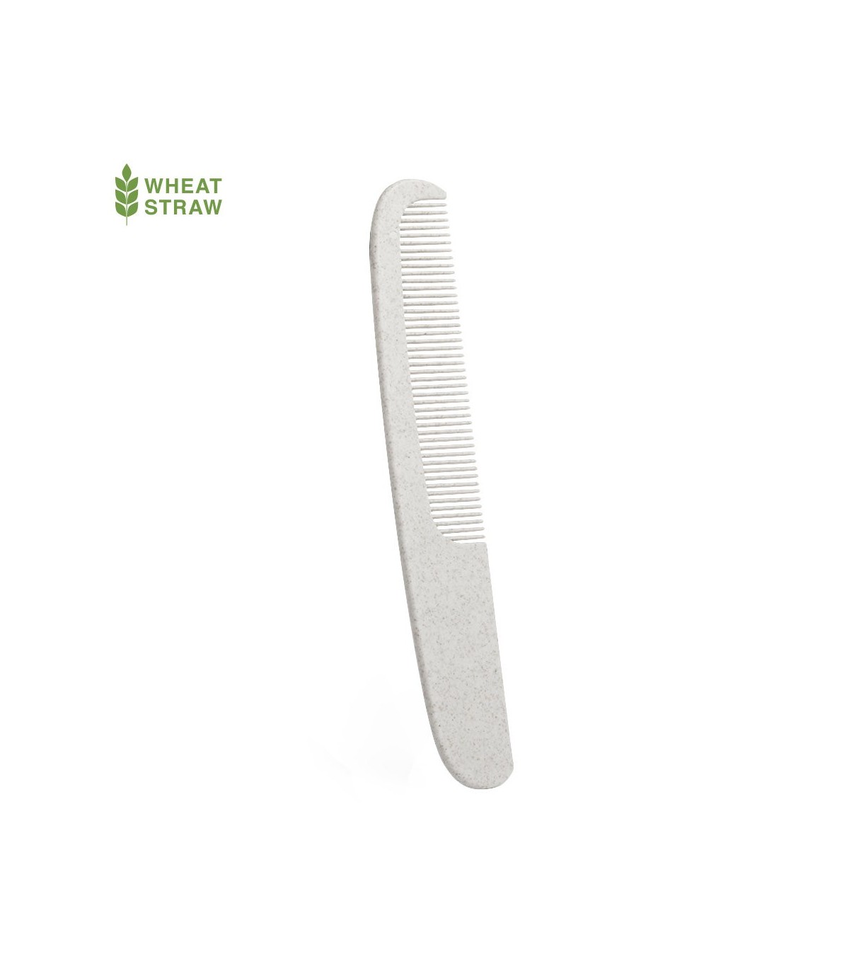 Peine de línea nature en caña de trigo, para así fomentar la utilización de materias primas naturales y reducir las emisiones contaminantes. Con amplia superficie de marcaje en mango.