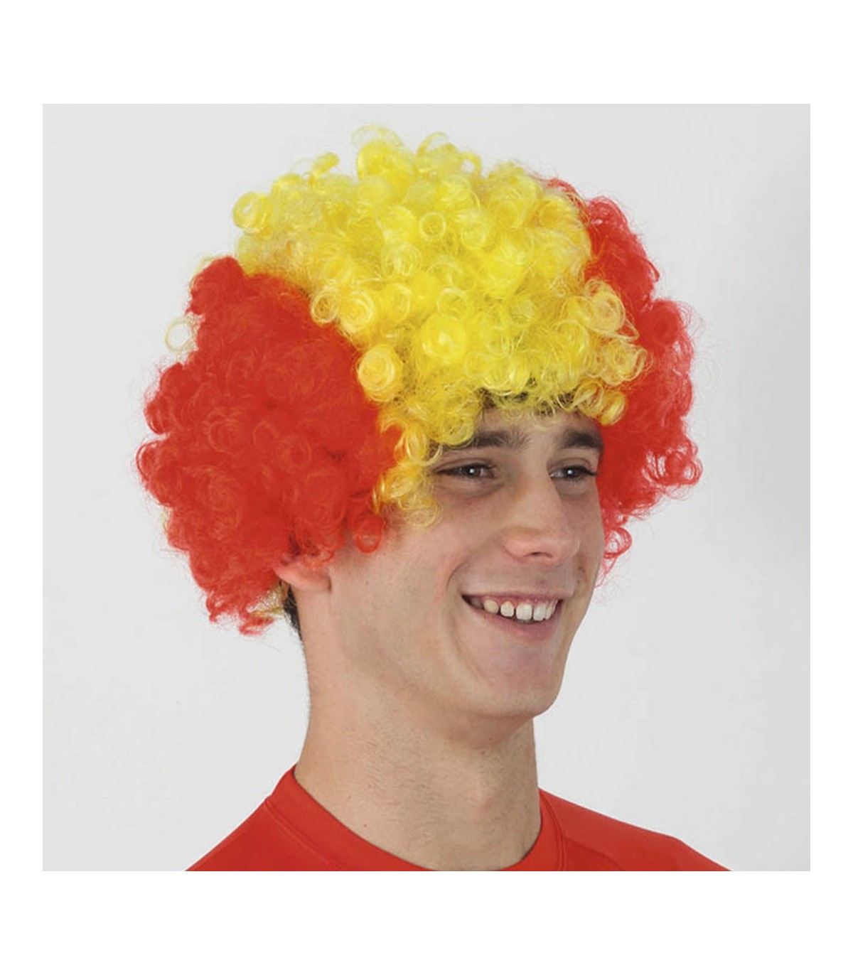 Divertida peluca de animación en vivos colores con pelo rizado. Disponible también en diseño de España.