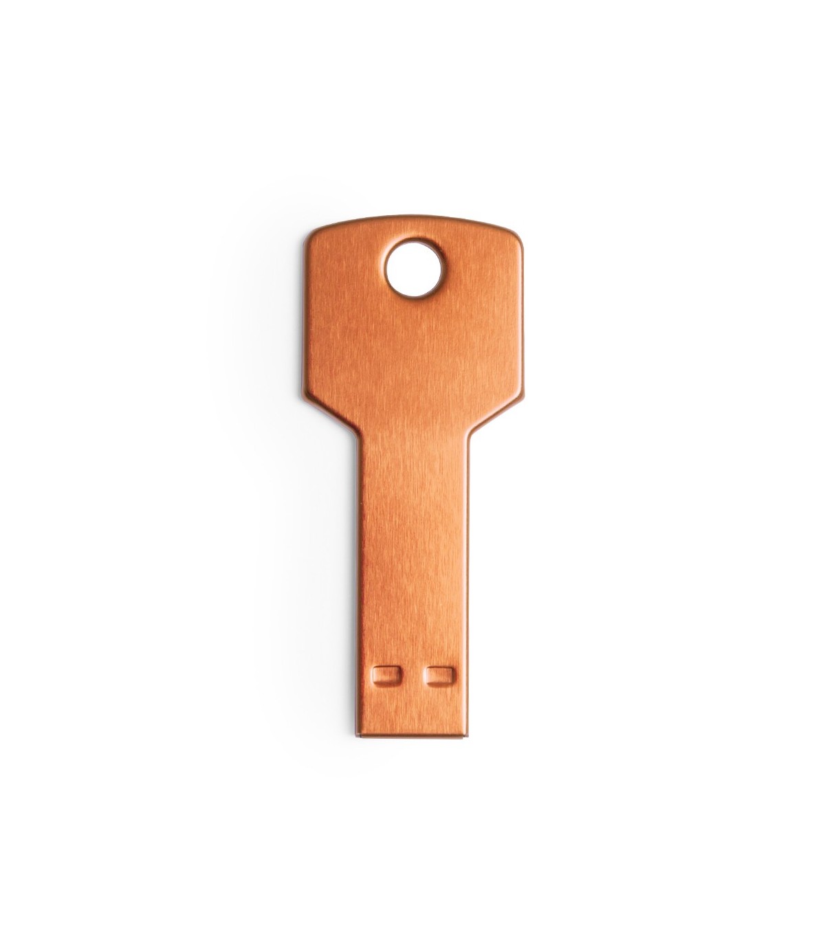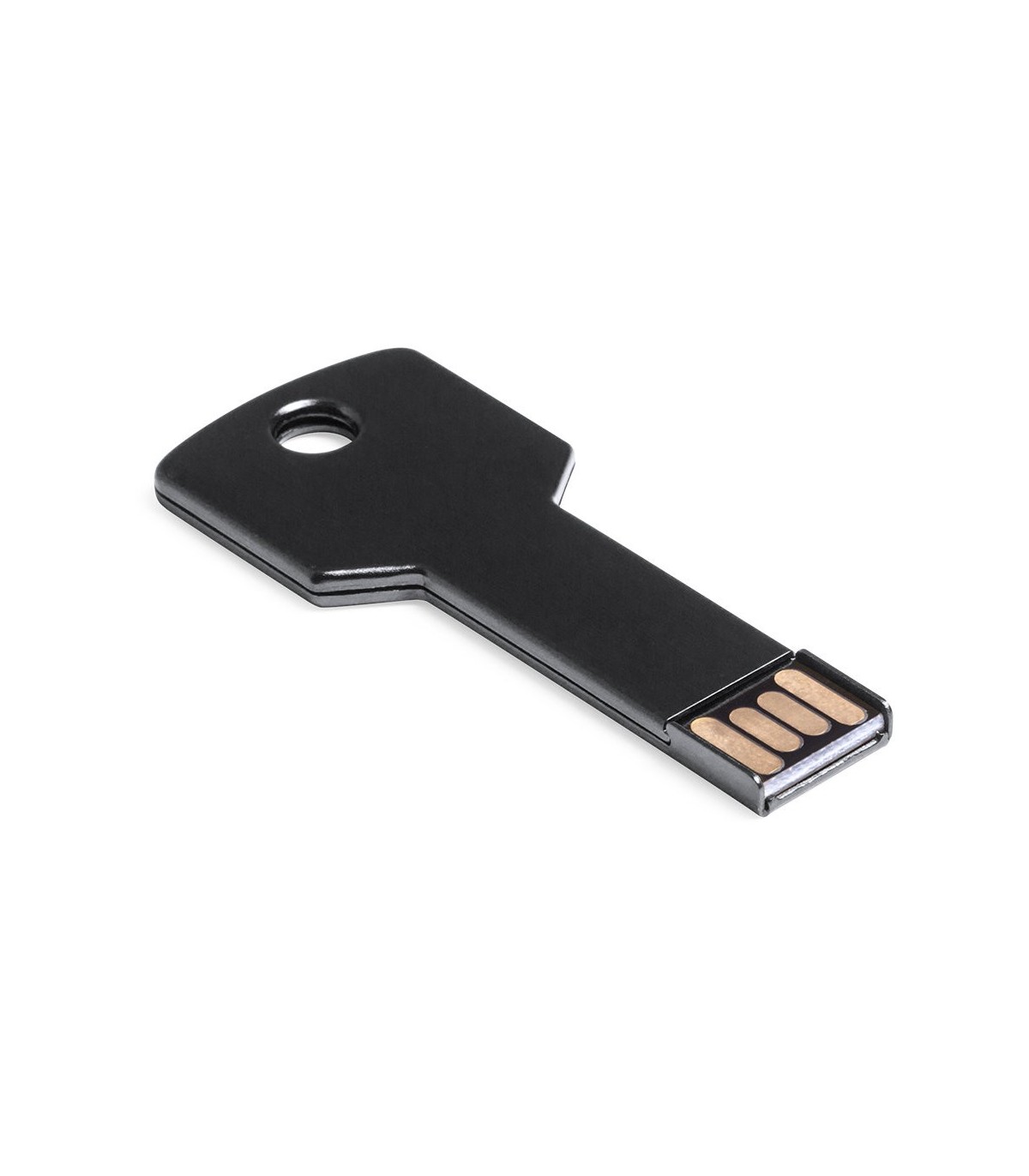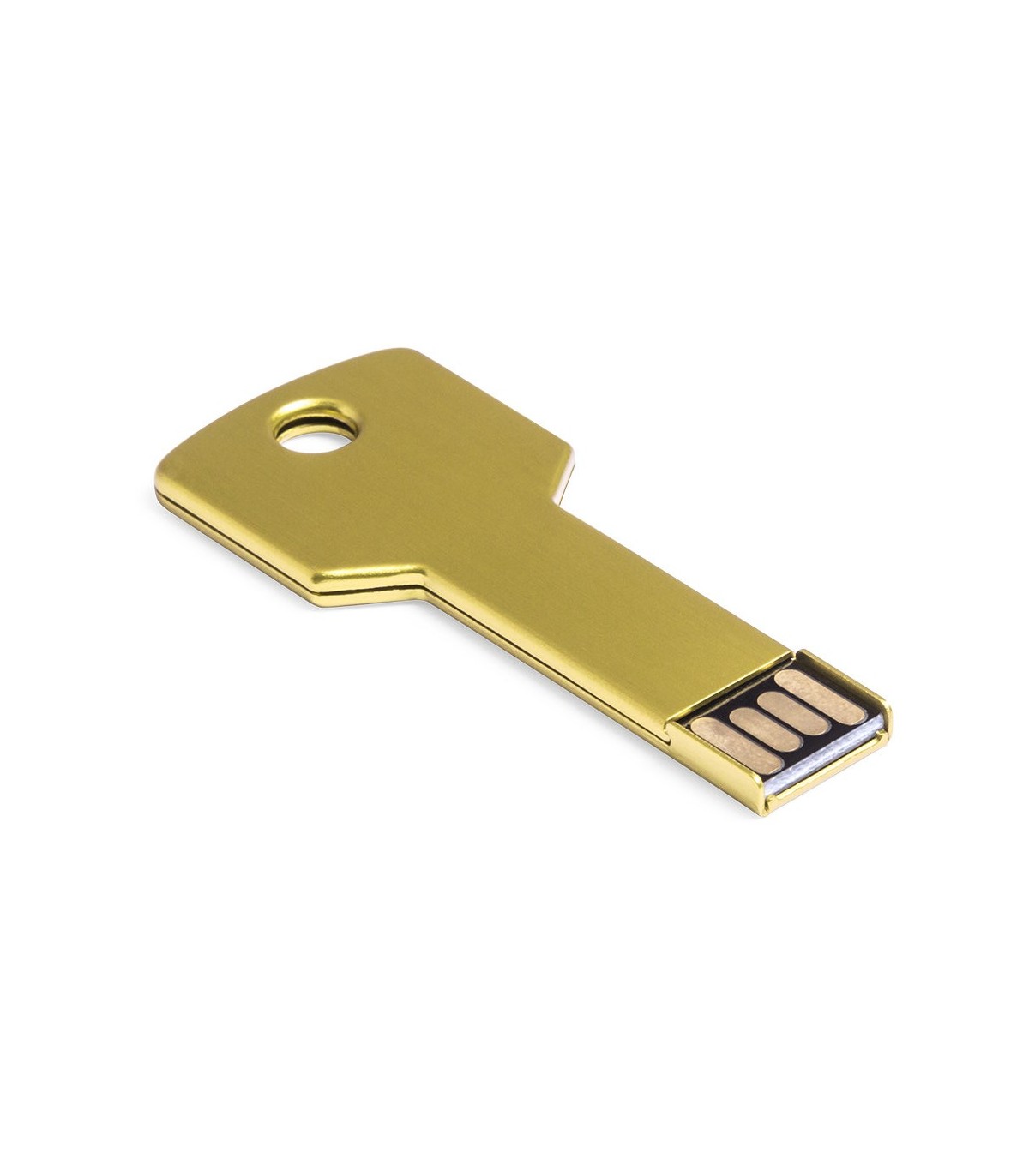 Memoria USB tipo llave para llevar en el llavero, acabado en aluminio, ideales para personalizar con tu logo de empresa. Presentada en estuche individual metálico.