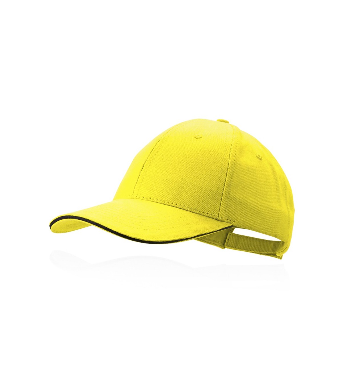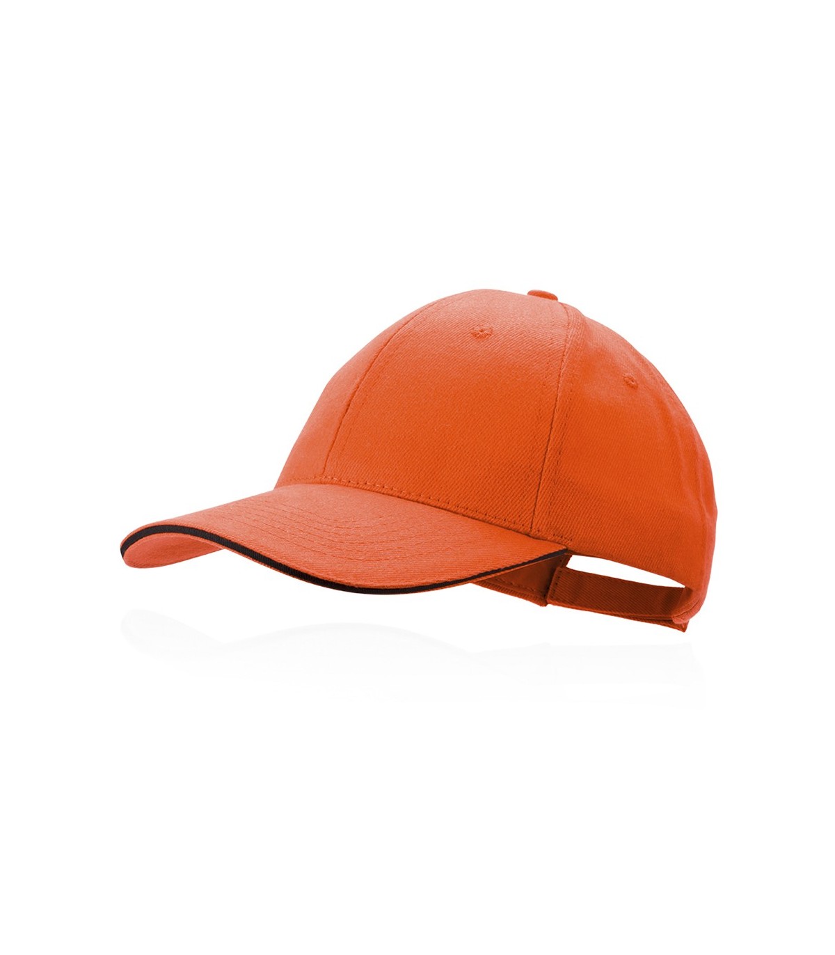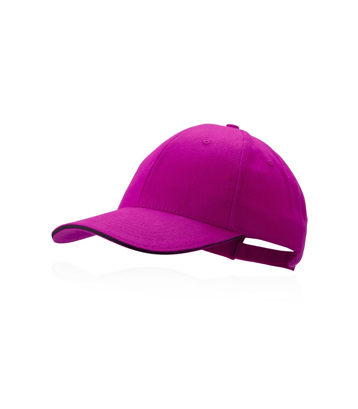 Gorra de 6 paneles en material 100% algodón peinado. En diferentes colores para personalizar con tu logo, con sandwich en color y acolchado en visera. Orificios de ventilación bordados y cierre ajustable de velcro.