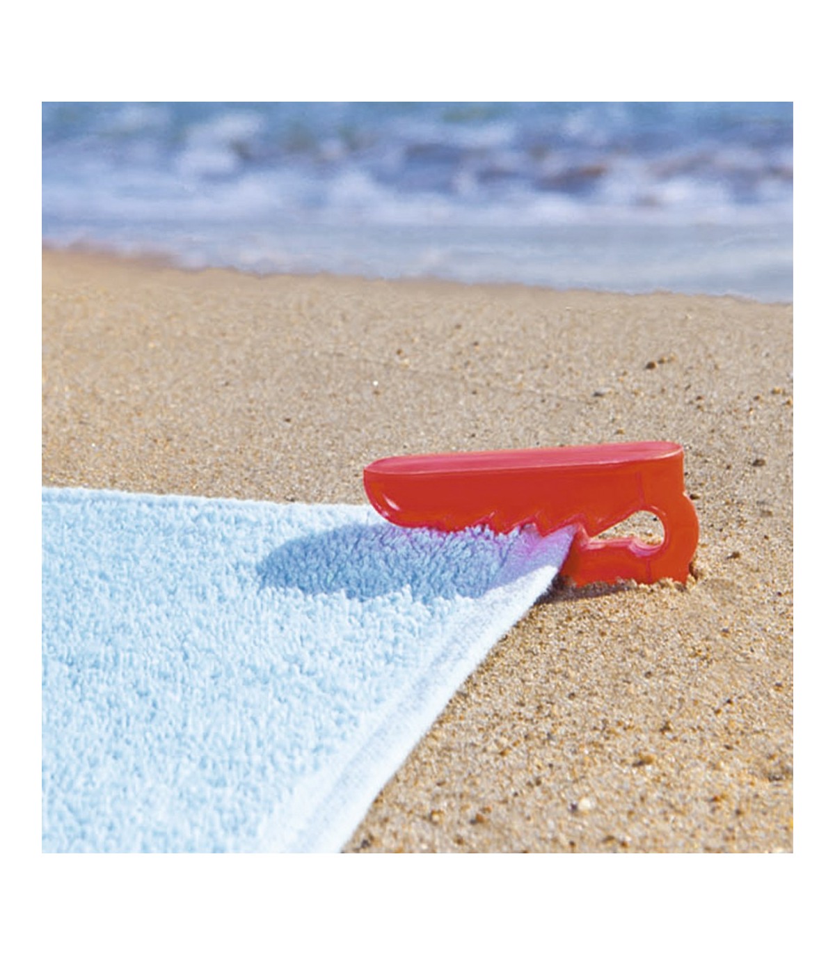 pinza para toalla o esterilla con mecanismo de seguridad para que no se vuele la toalla o el pareo, personalizadas con logo de empresas para regalos promocionales.