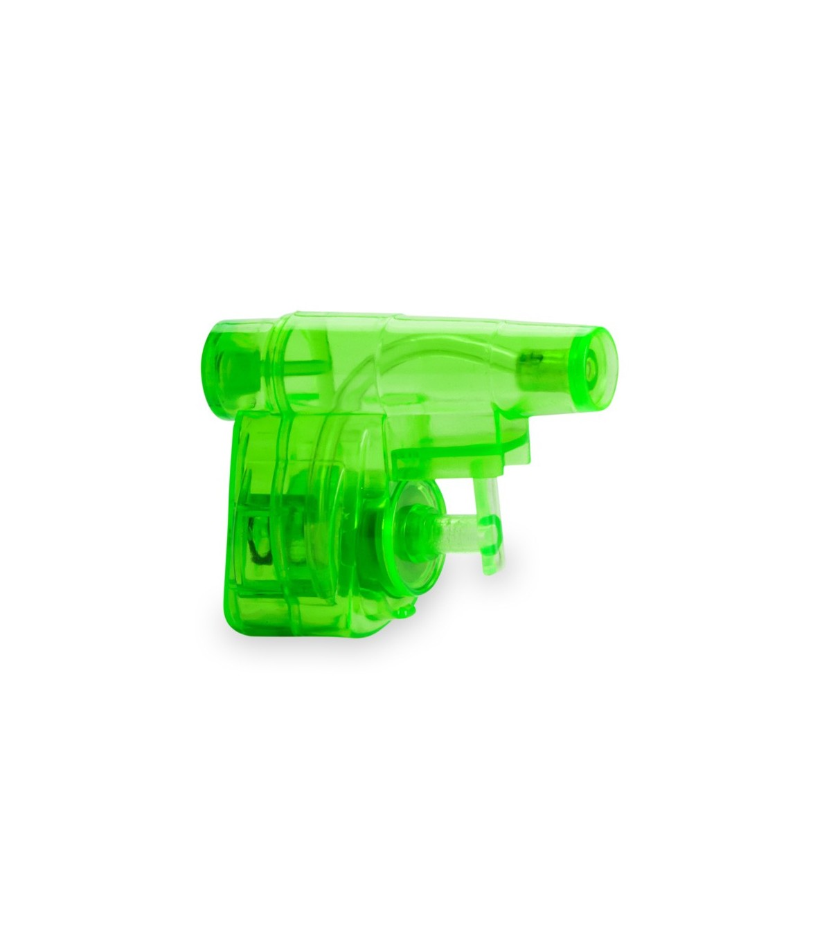 Pistola de agua en variada gama de vivos colores transparentes. Con cierre para depósito de seguridad, ideales para regalos promocionales de empresa.