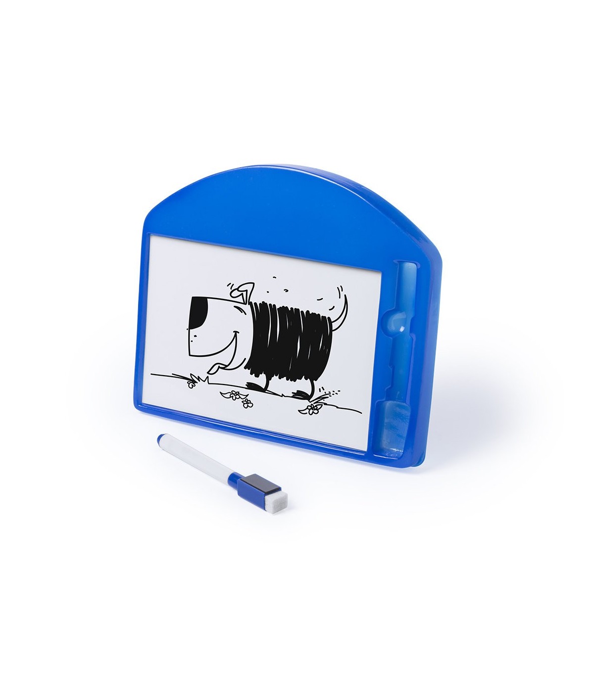 Pizarras para dibujar personalizadas en variada gama de vivos colores. Con troquelado para rotulador en marco rotulador magnético a juego con borrador incluido.