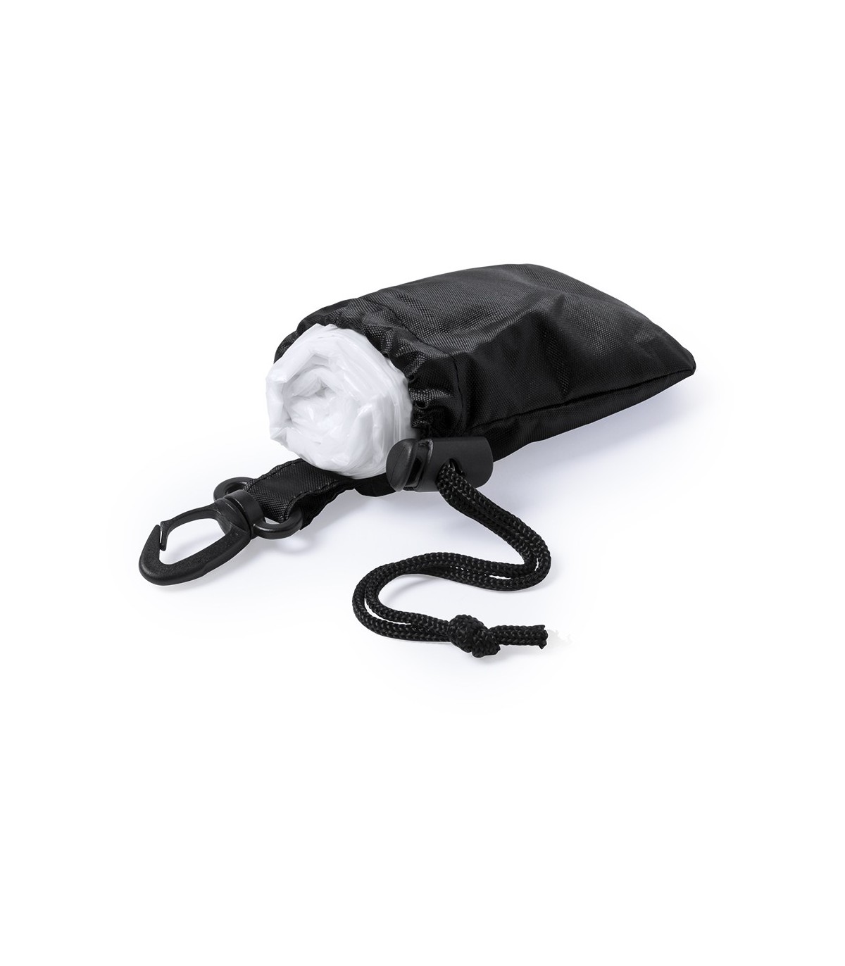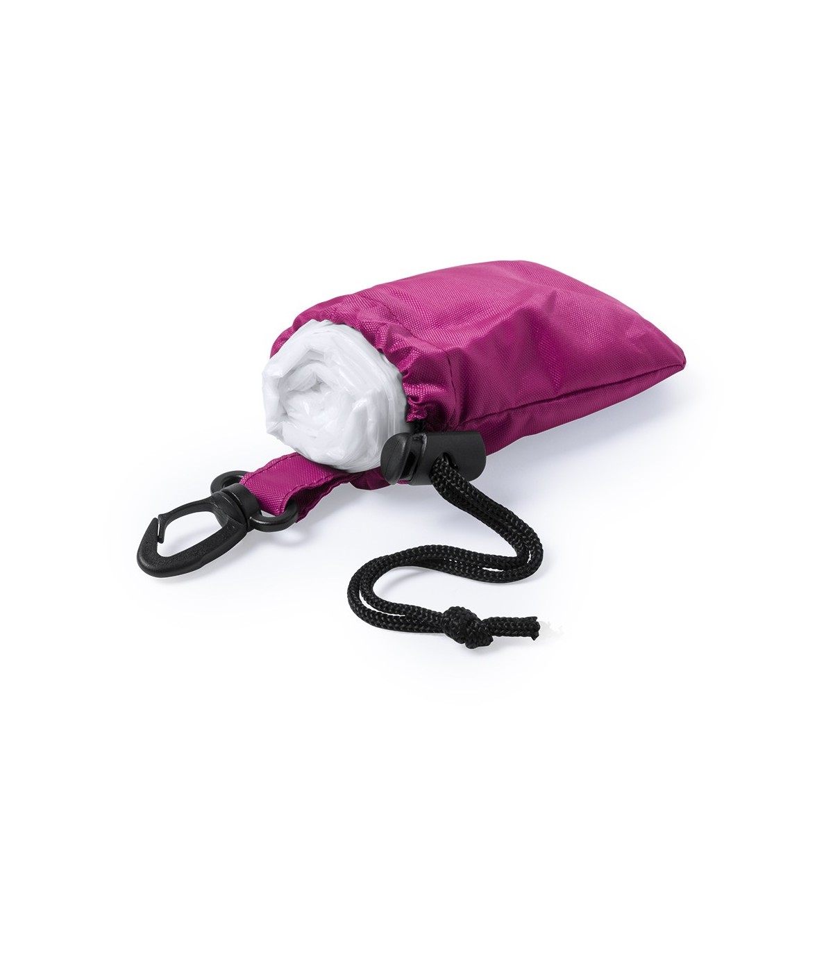 Pochos para adultos con bolsas de poliéster para marcaje de autocierre con cordón y accesorio de ajuste y mosquetón de transporte. Talla Unica.