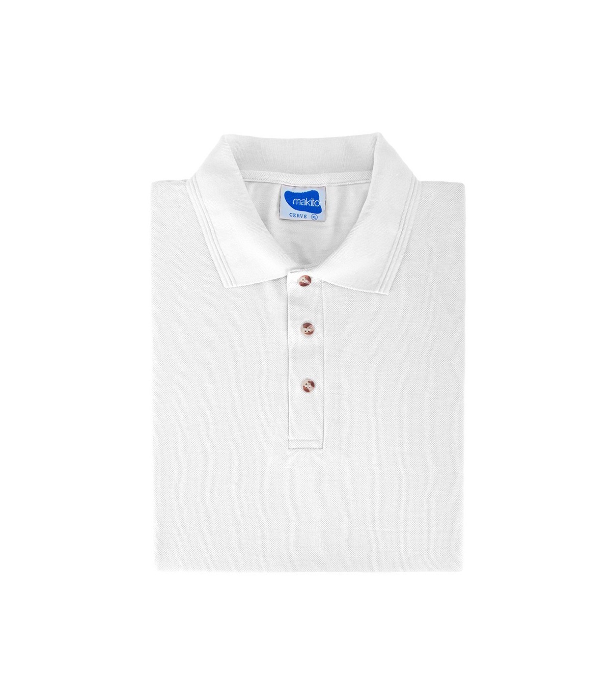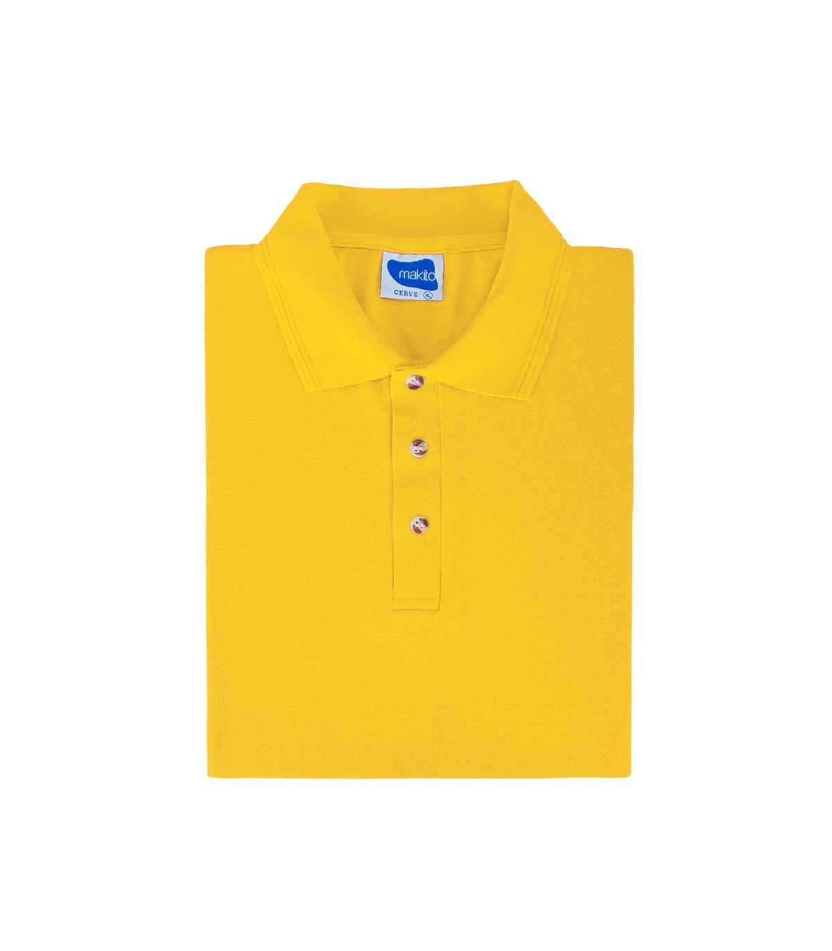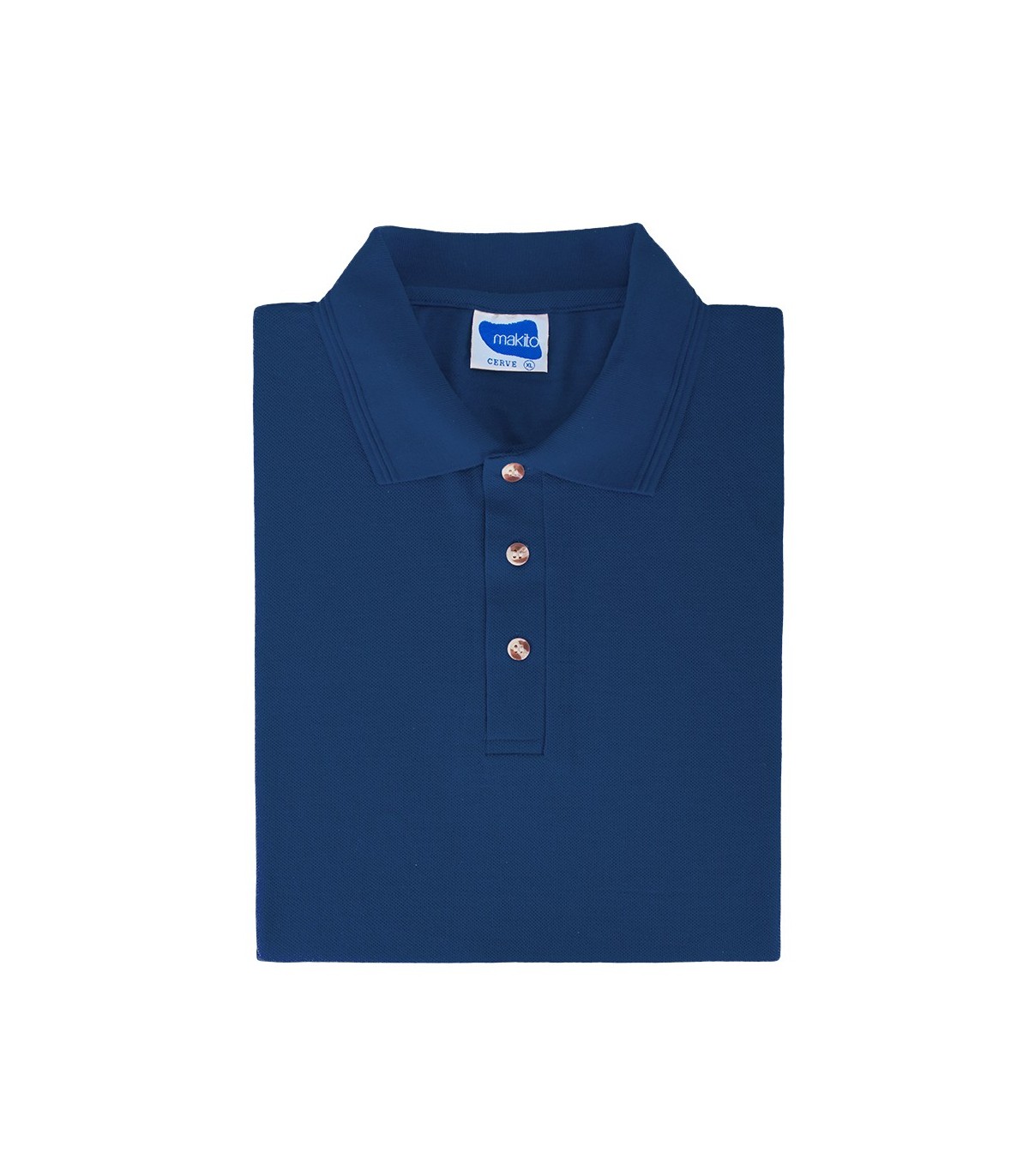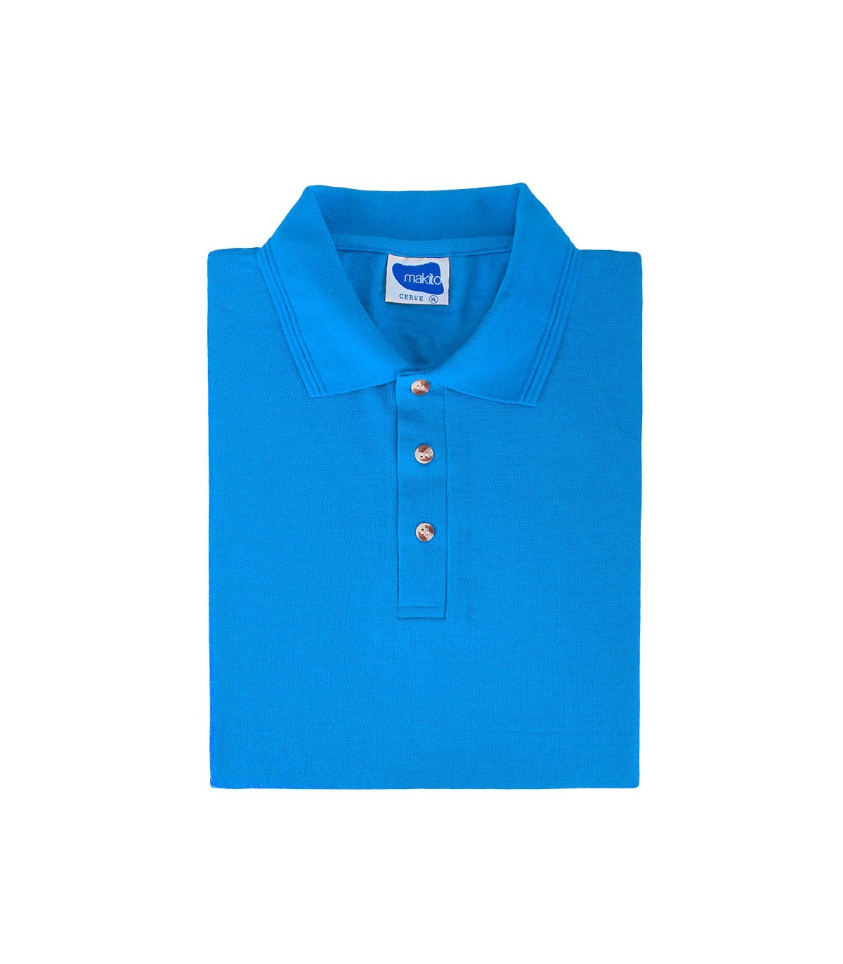 Polo de piqué en material combinación de algodón y poliéster de 180g/m2. Con tres botones de cierre a juego y disponible en variada gama de vivos colores. Tallas M, L, XL, XXL.
