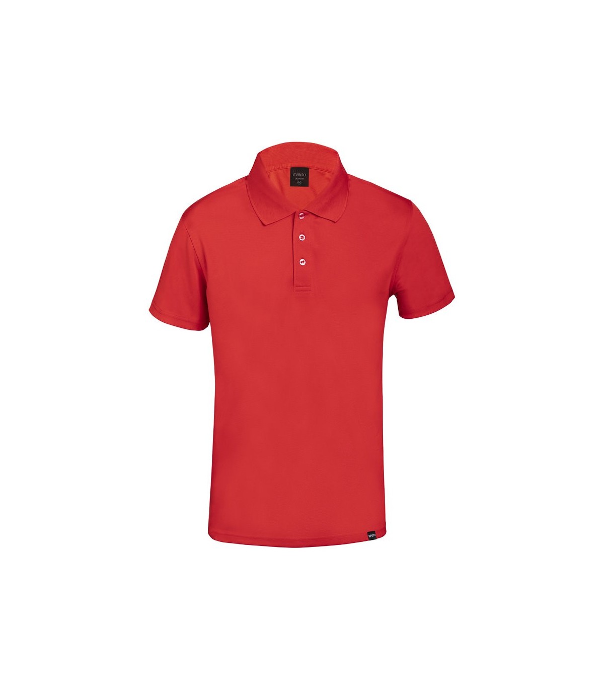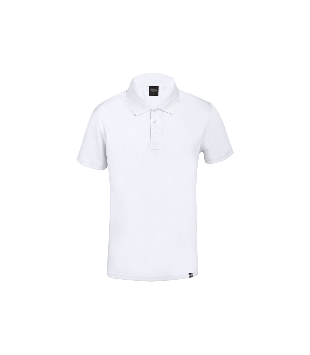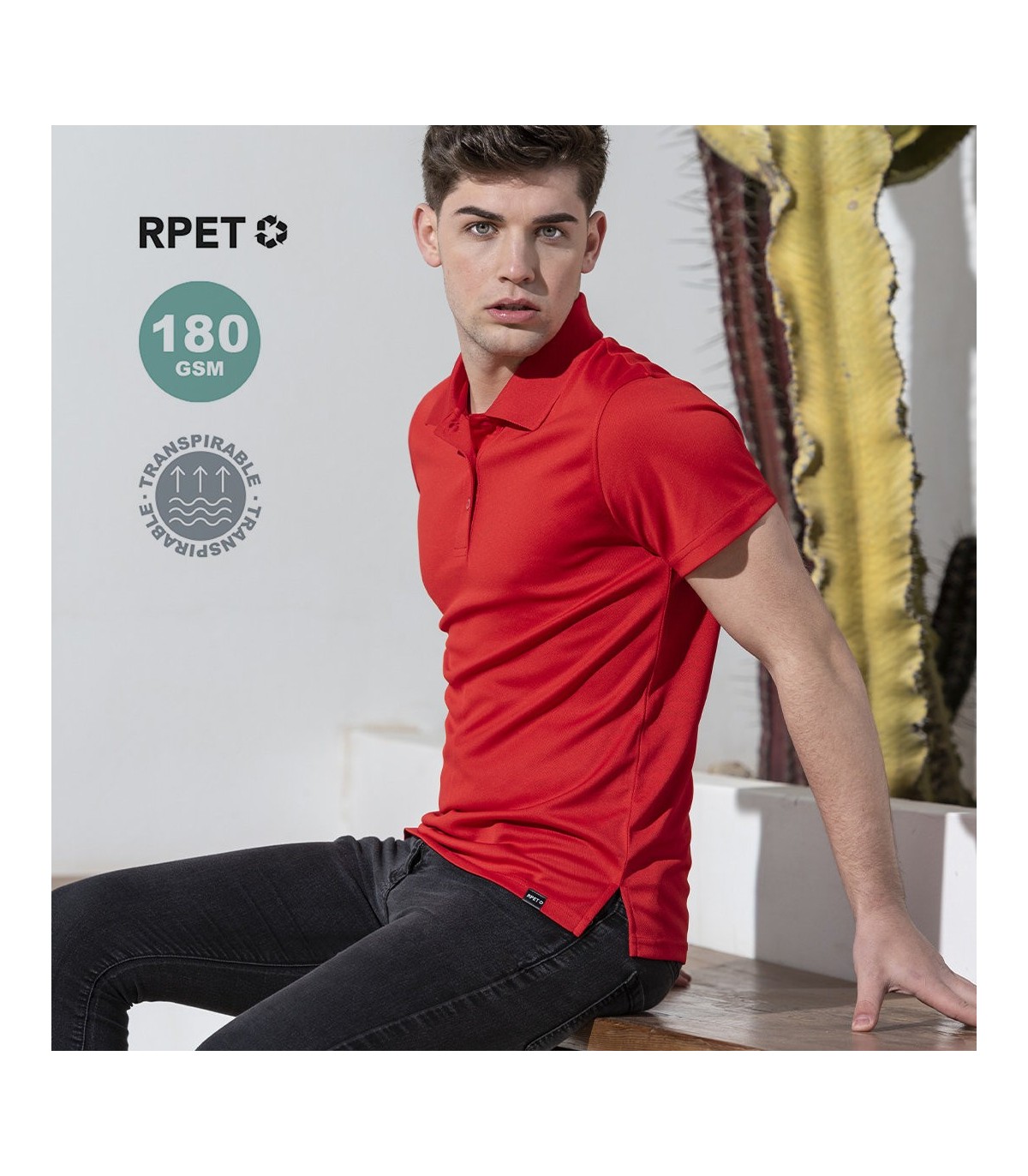Polo transpirable en material 100% poliéster RPET de 180g/m2, Con tres botones de cierre a juego, disponible en variada gama de colores y en tallas S, M, L, XL, XXL. Con distintivo RPET en etiqueta.