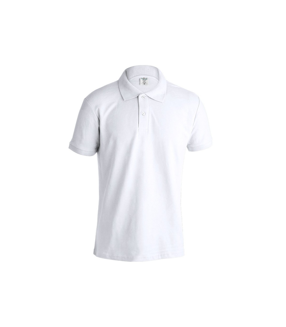 Polo de piqué personalizados en 100% algodón de 180g/m². Con dos botones de cierre a juego y disponible en color blanco para hombres.