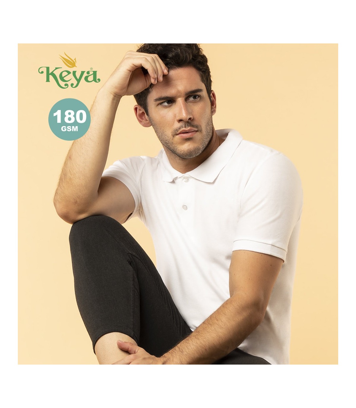 Polo de piqué para adulto de Keya MPS180. En material 100% algodón de 180g/m². Con dos botones de cierre a juego y disponible en color blanco. Tallas S, M, L, XL, XXL, 3XL.