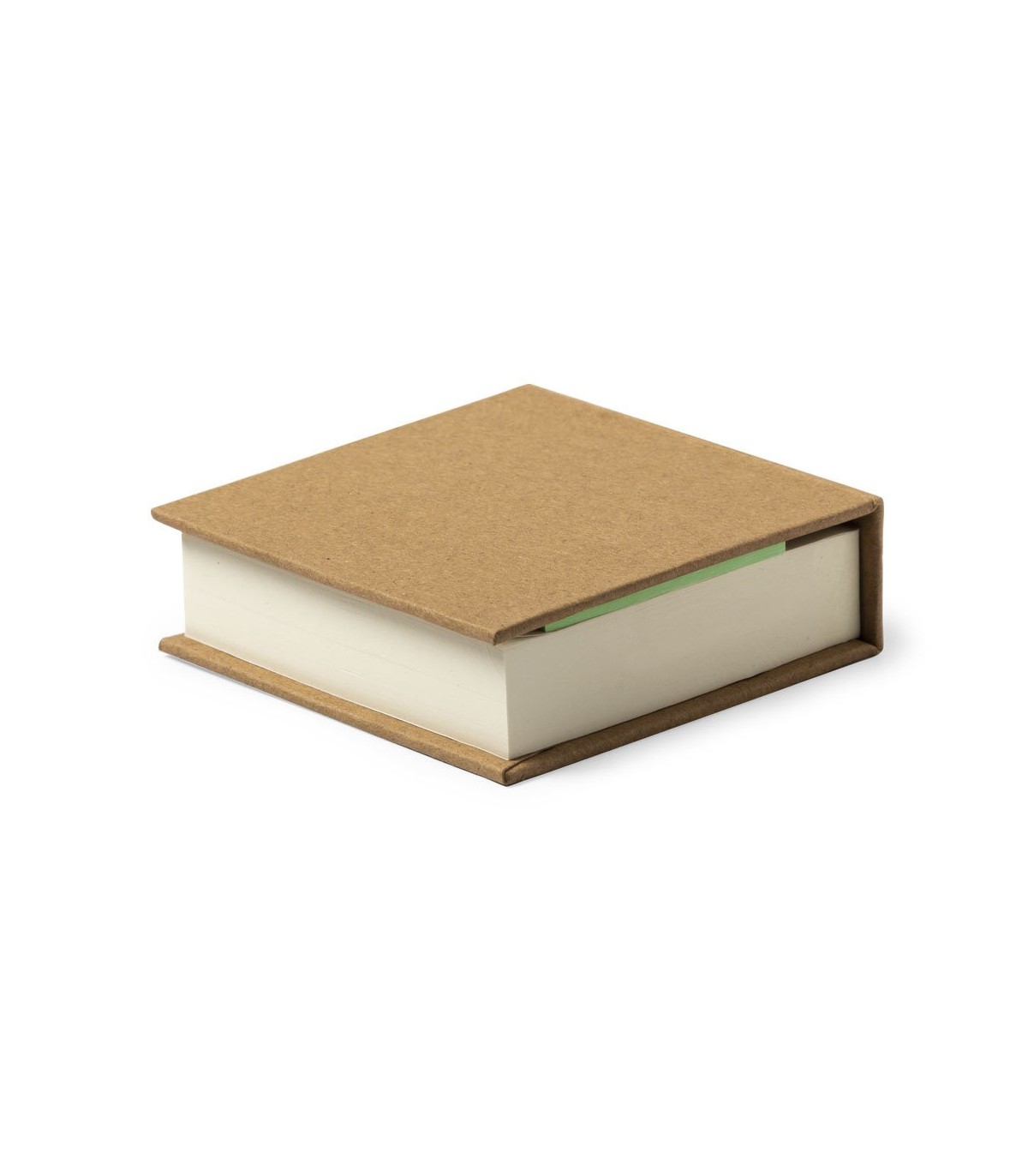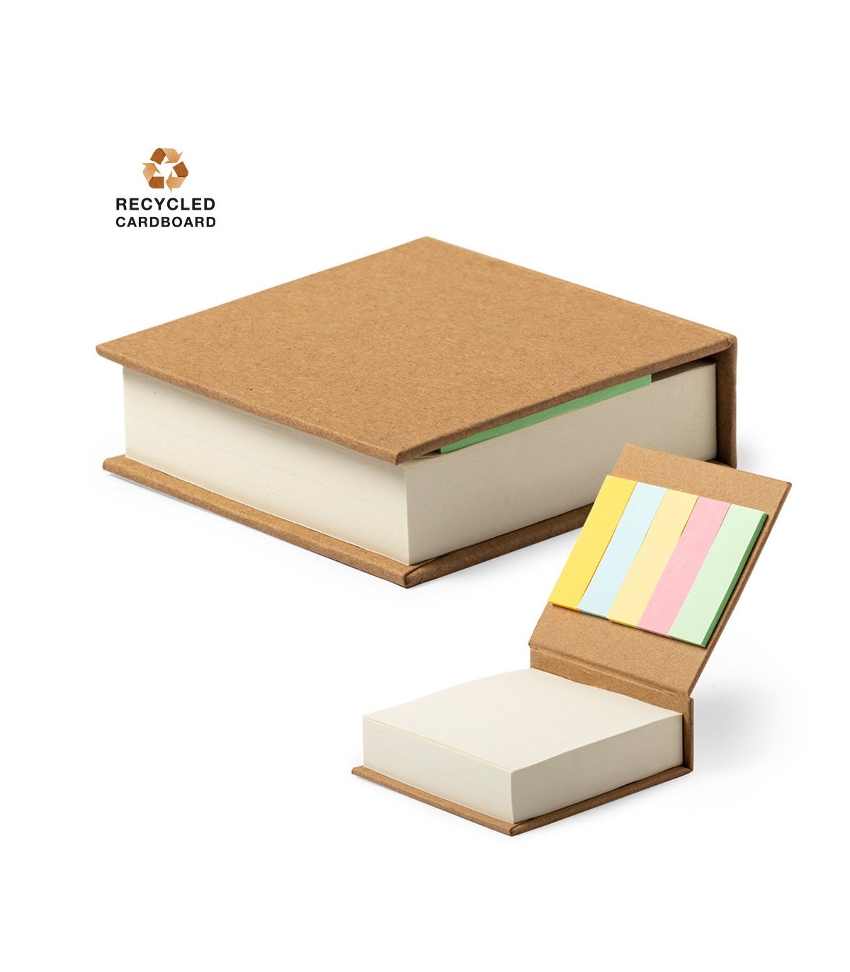 Portanotas con tapas rígidas en resistente cartón reciclado. Con 200 hojas lisas y 125 mini notas adhesivas.