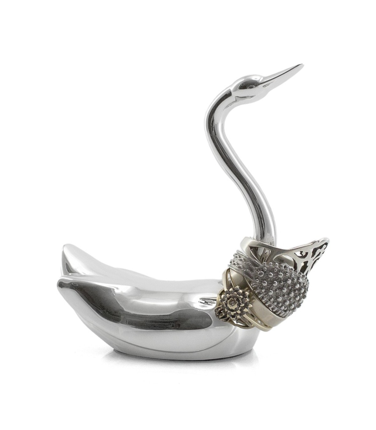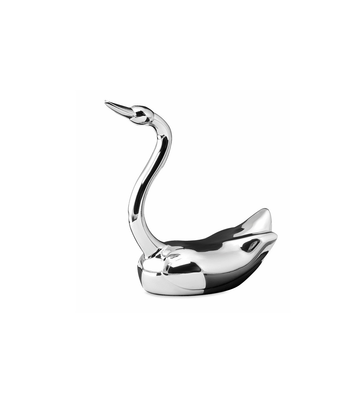 Original soporte metálico brillante para anillos en diseños cisne y gato personalizados en láser para regalos de empresa promocionales.