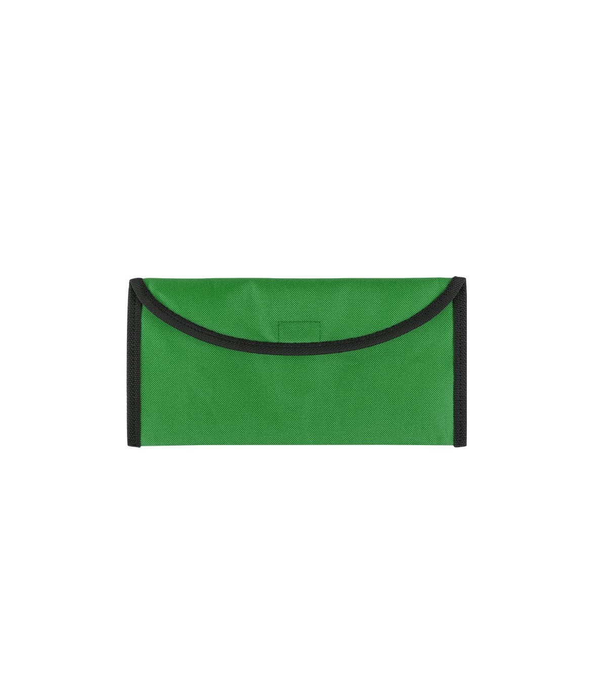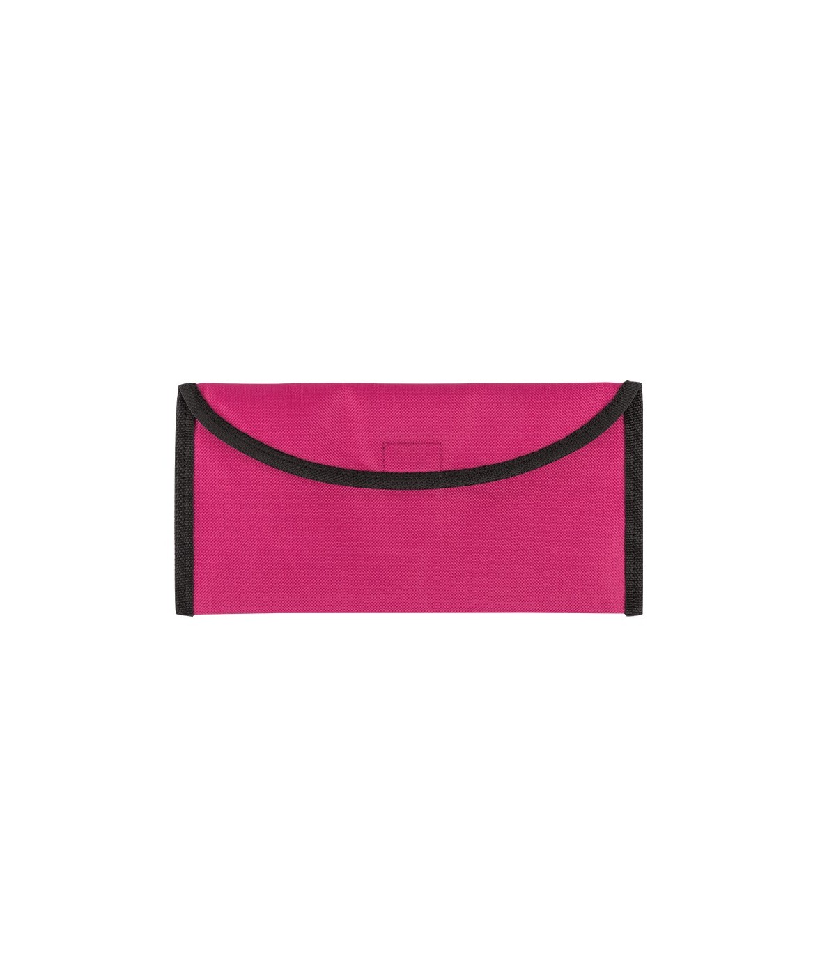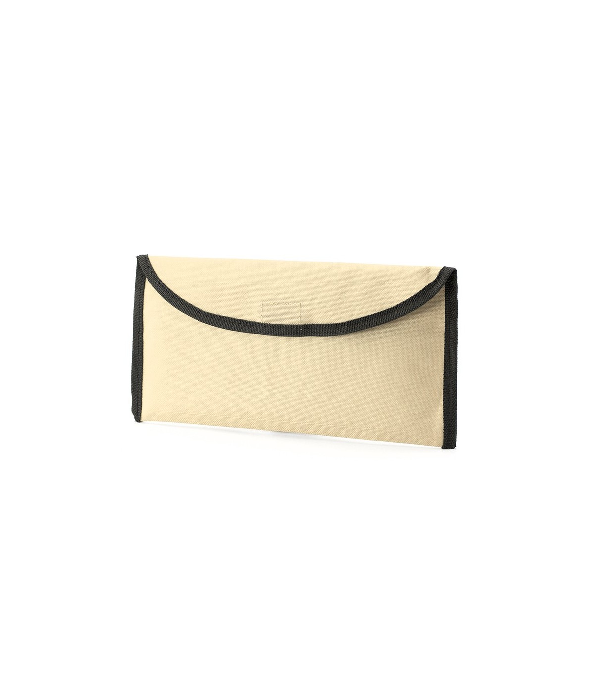 Portadocumentos de viaje en resistente poliéster 600D y en diferentes colores llamativos para personalizar. Con cierre de velcro, interior forrado y accesorio para cinturón en la parte trasera.