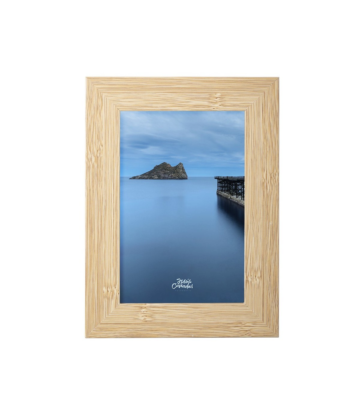 Portafotos de línea ecológica fabricado en MDF, con cristal de protección y soporte posterior para orientación en horizontal o en vertical. Diseñado para fotografías con tamaño de hasta 10x15 cm. Presentado en atractiva caja individual de diseño eco.
