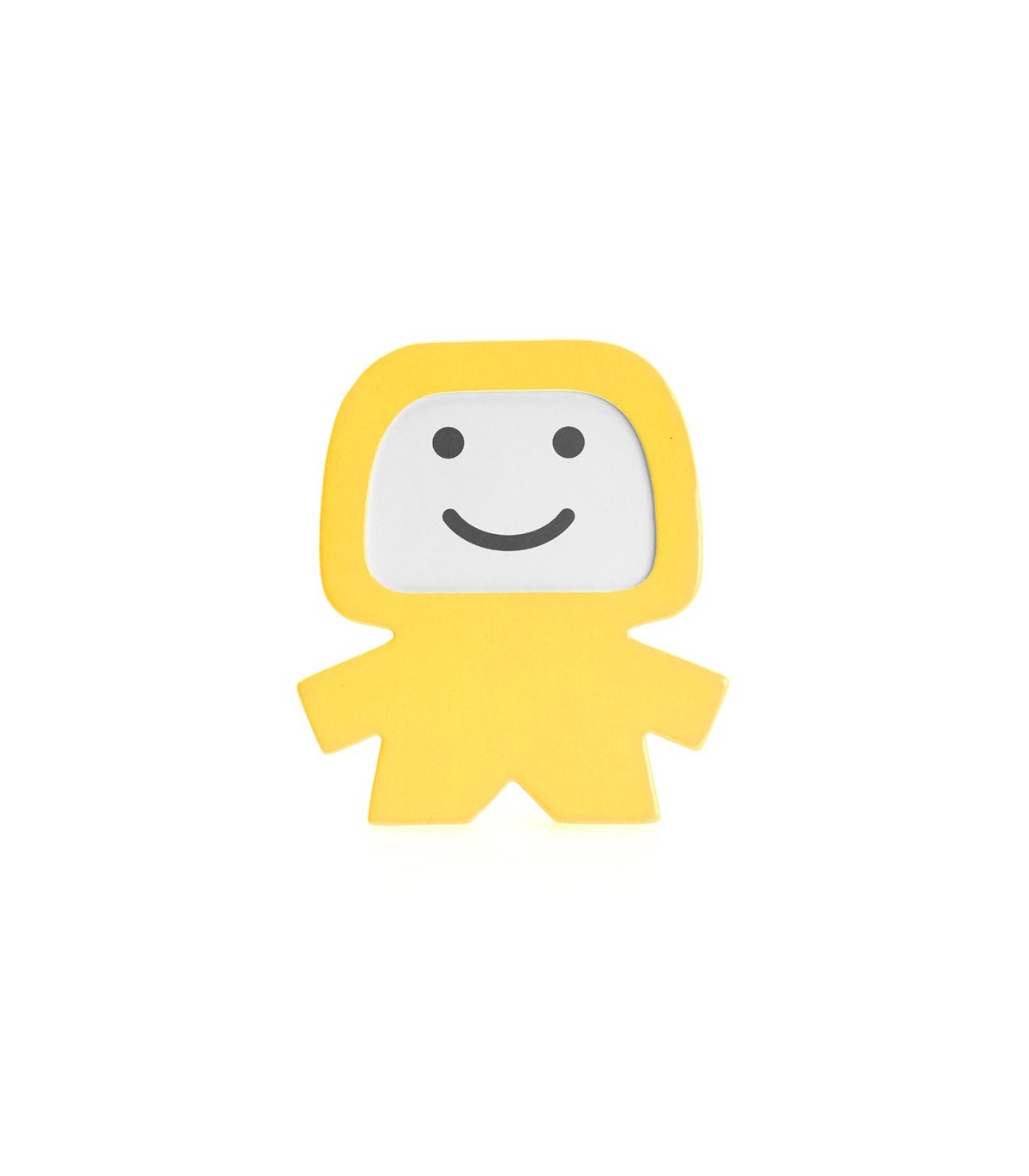 Portafotos en cartón laminado de acabado brillante en alegres colores. Con soporte en parte posterior y para fotos de hasta 7,5x6cm.