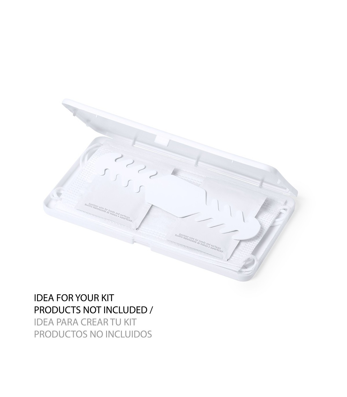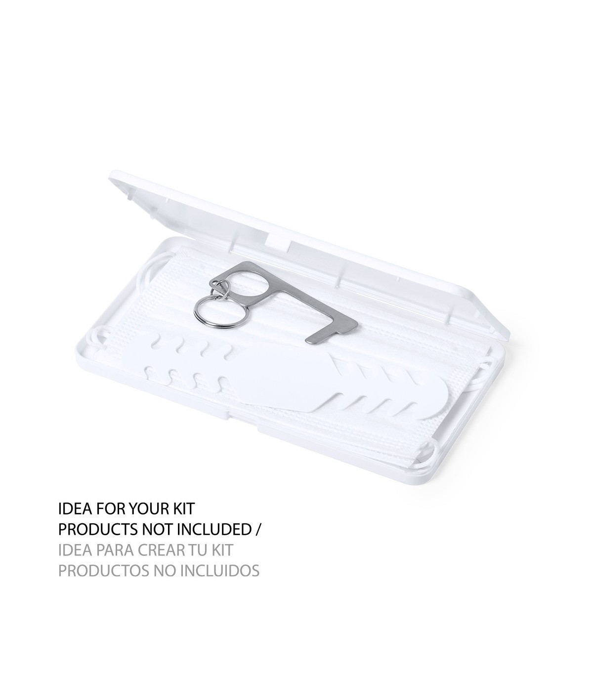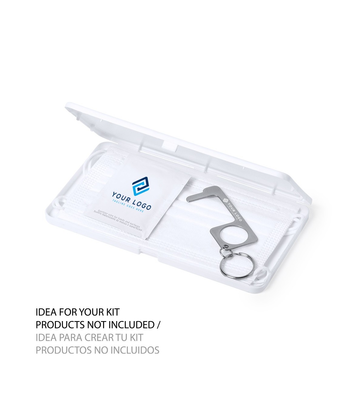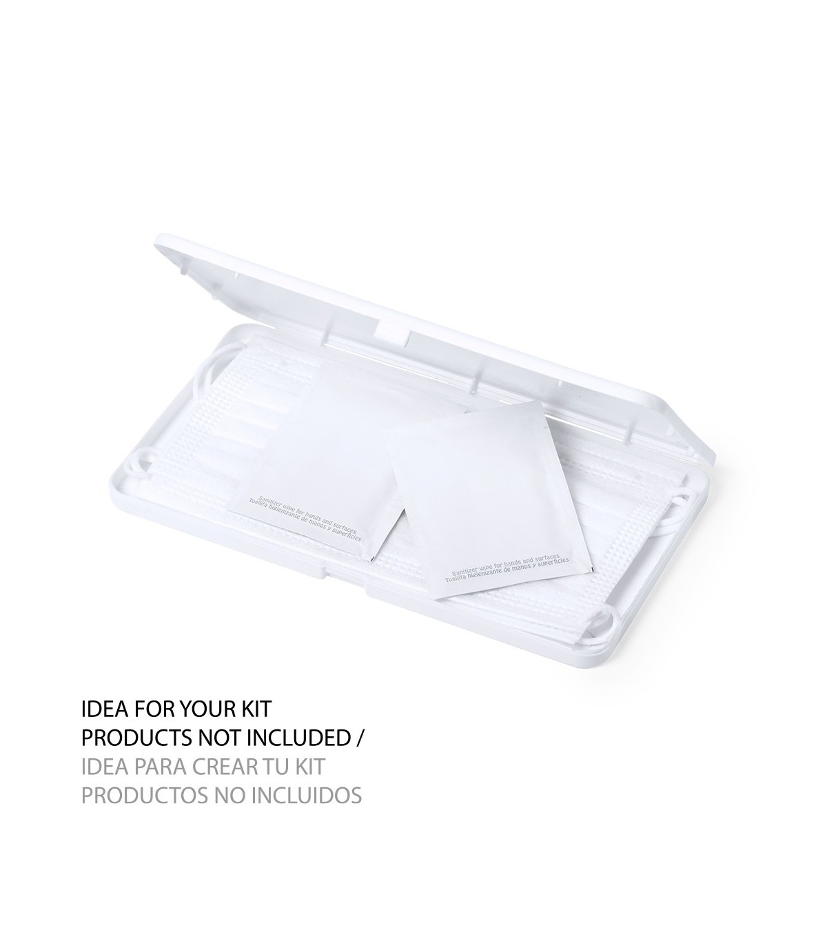 Portamascarillas en resistente material PP de acabado sólido y en tono blanco mate. Ideal para el transporte y la protección de todo tipo de mascarillas y para la creación de sets con diversos productos higiénicos. Fácil de desinfectar después de cada uso.