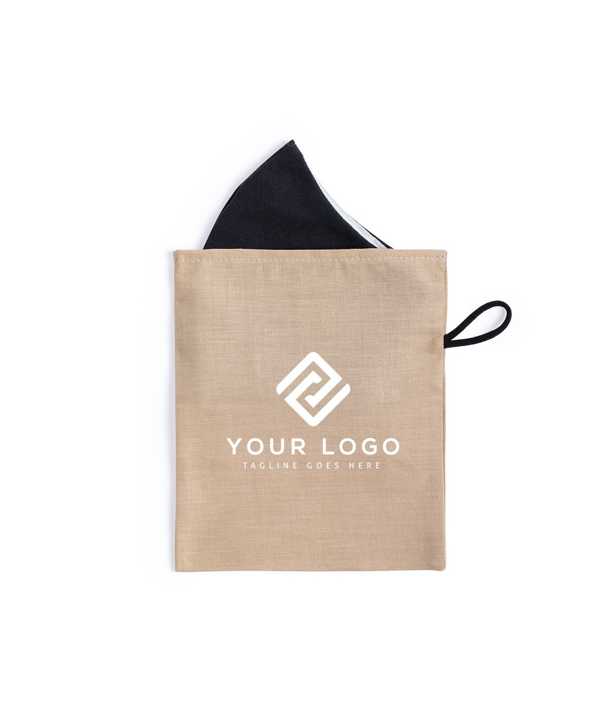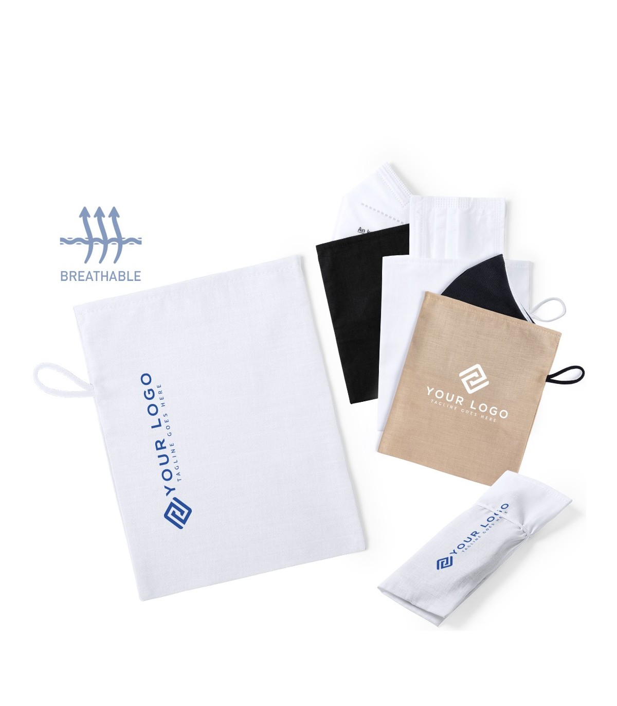 Portamascarillas en tela personalizados con tu logo, Fabricado en tejido de alta resistencia (mezcla de algodón y poliéster), transpirable y lavable Con elástico.