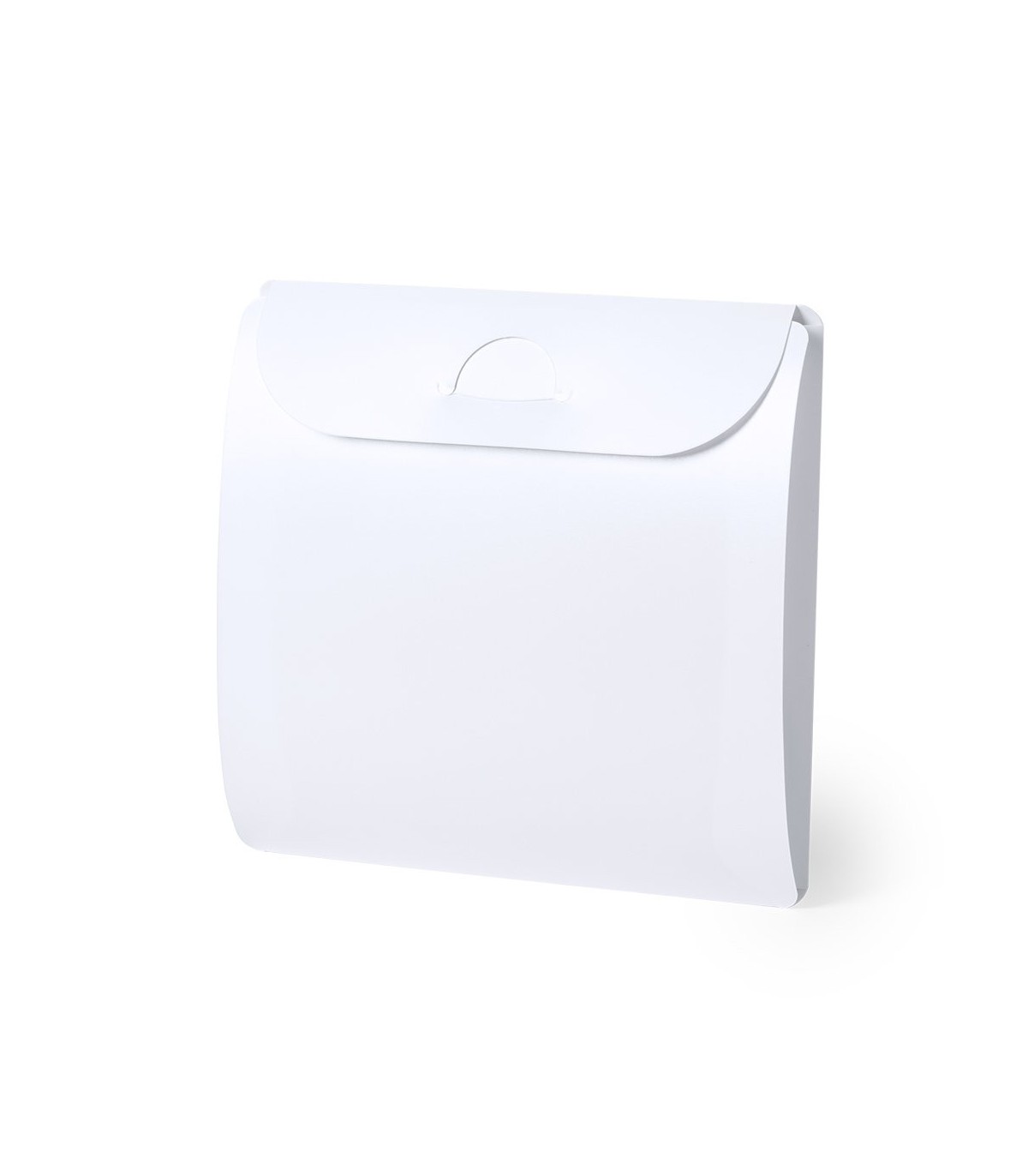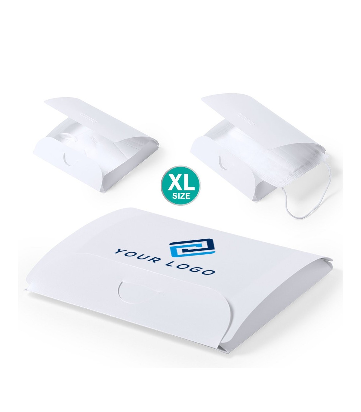 Portamascarillas tamaño XL en resistente material PP de acabado blanco sólido, ideal para el transporte y la protección de todo tipo de mascarillas. Con práctico sistema de plegado, diseñado para obtener un rápido acceso a la mascarilla. Fácil de desinfectar después de cada uso e ideal para impresión.