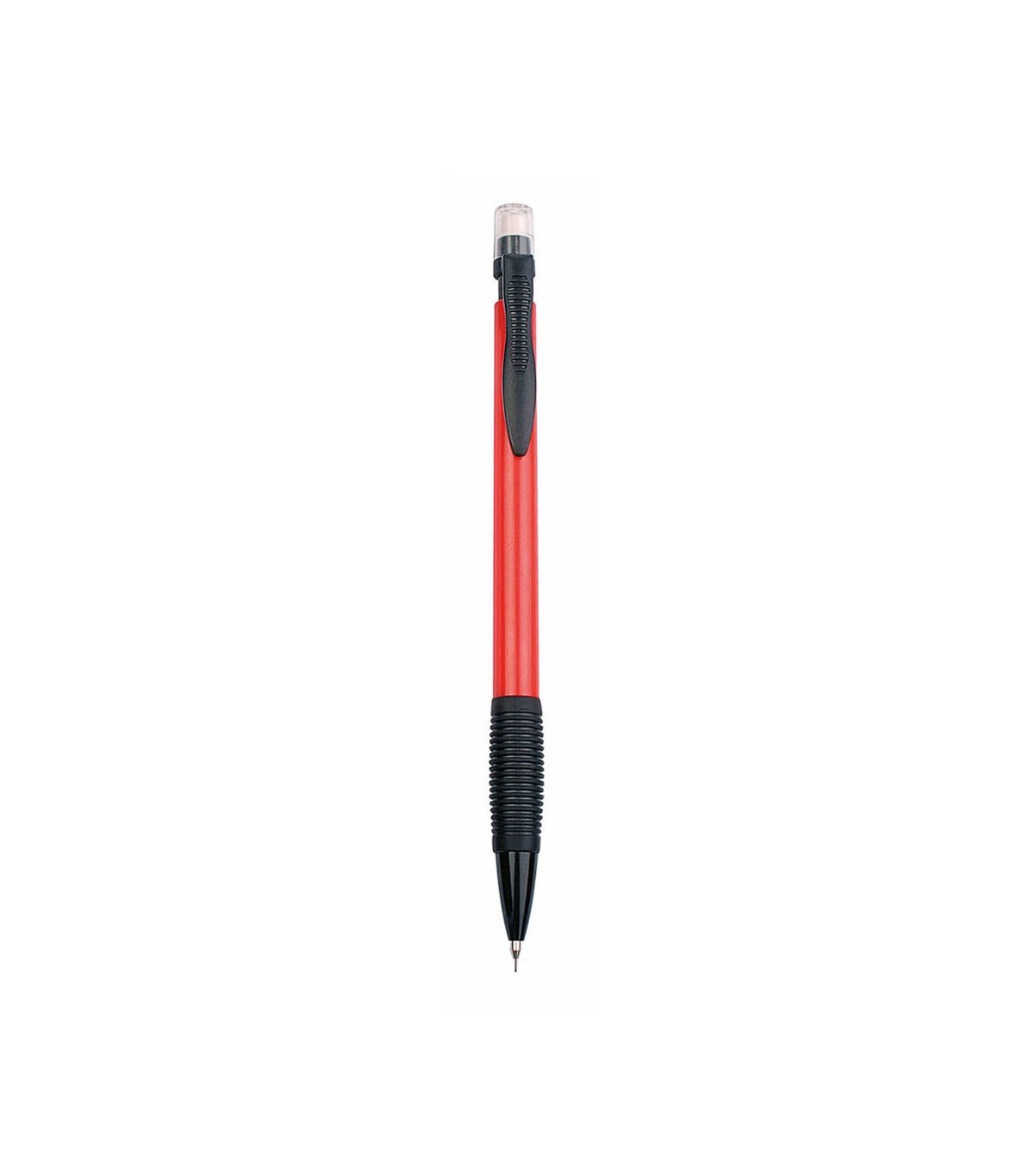 Portaminas de diseño bicolor con cuerpo en suave acabado sólido en llamativos colores brillantes. Con accesorios en negro, cómoda empuñadura. Incluye minas de 0,5mm y goma de borrar con capucha de protección transparente.