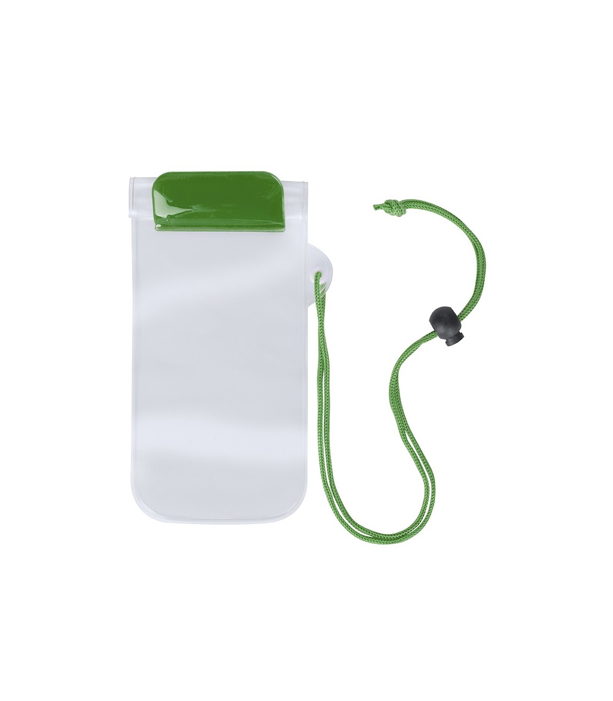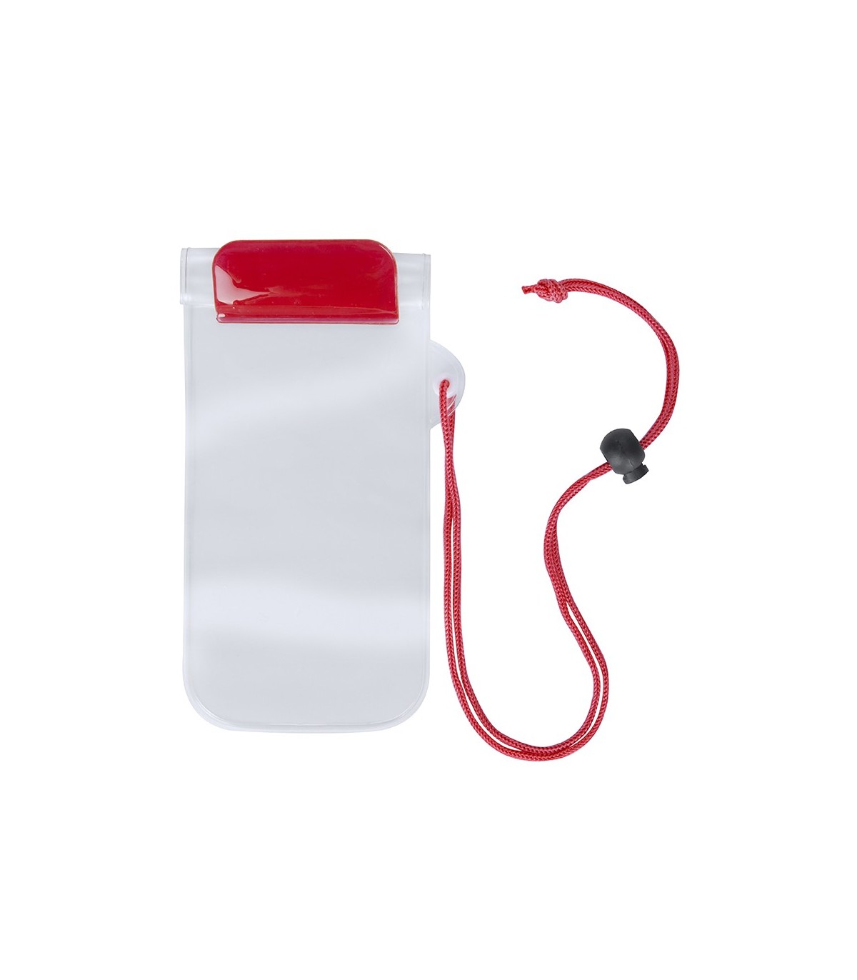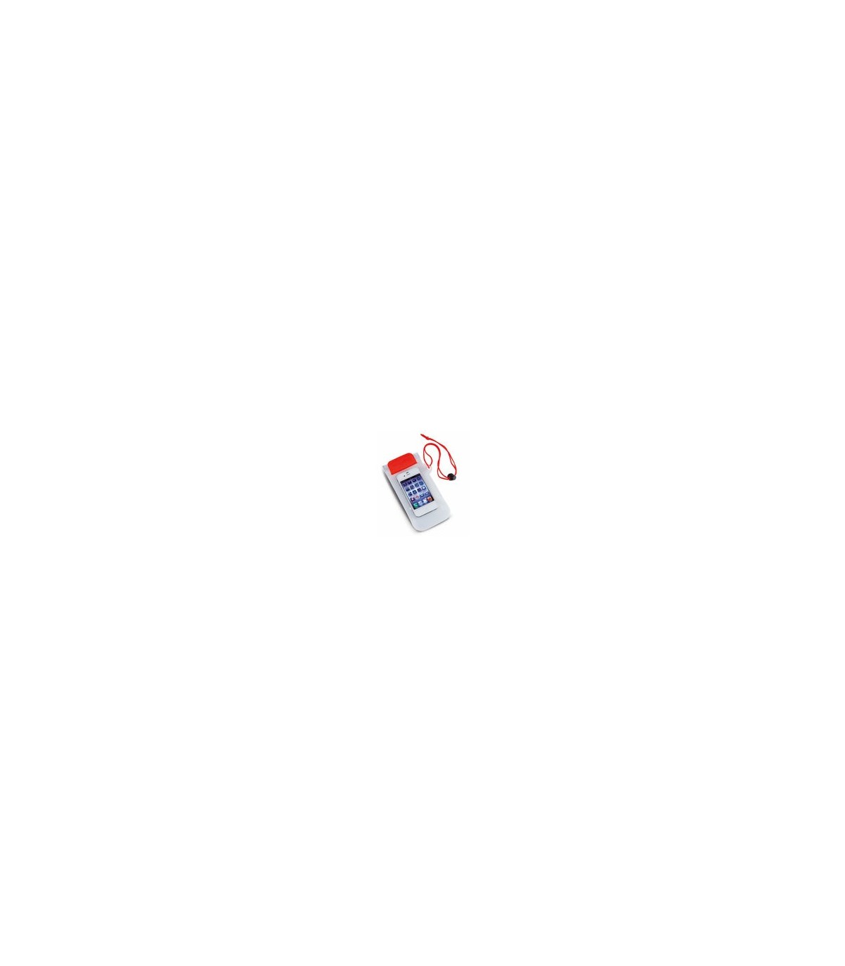 Prático portatodo impermeable en PVC con función táctil y doble sistema de seguridad para preservar la estanqueidad. Con zona de marcaje frontal a juego con el cordón de transporte -con accesorio de ajuste-.
