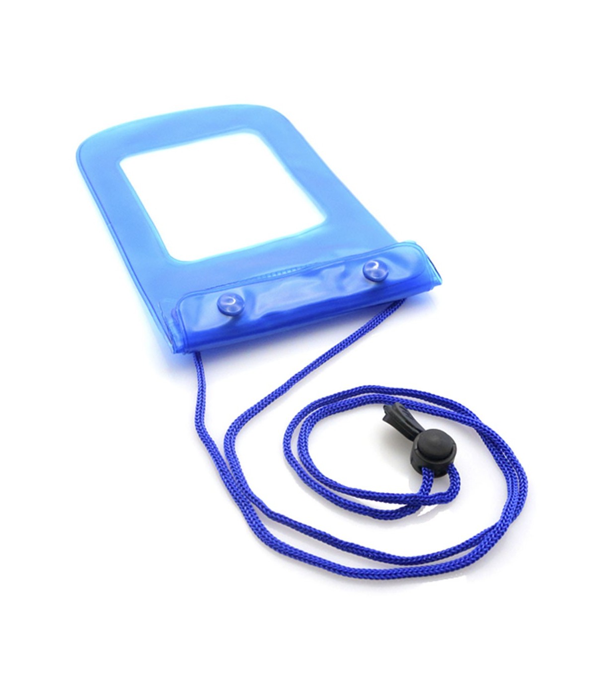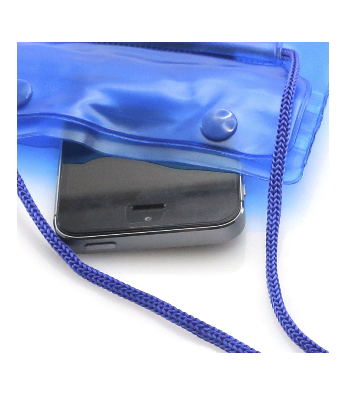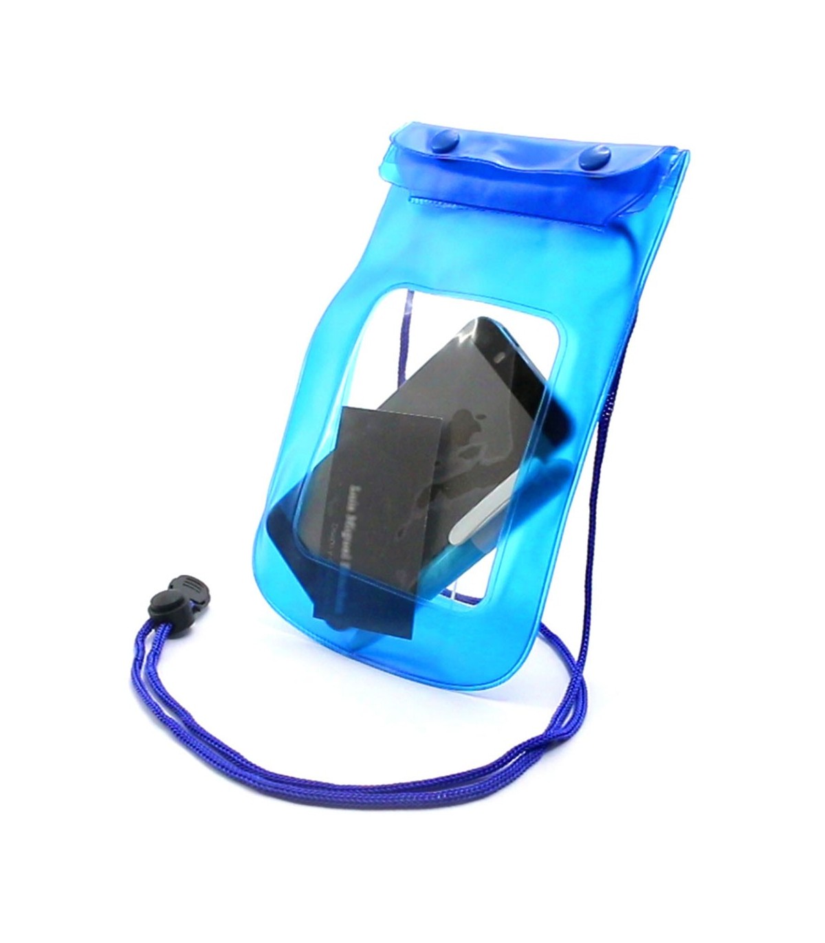 Práctico portatodo impermeable en PVC de acabado translúcido con ventana frontal transparente. Con función táctil y cierre estanco. Solapa con cierre de corchete a juego y cinta de transporte a juego con accesorio de ajuste.