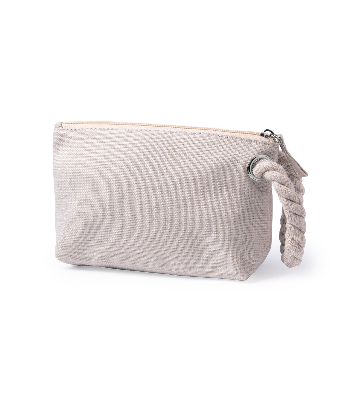 Portatodo multiusos en algodón y poliéster en tonos crudos naturales. Cremallera a juego, con práctica asa trenzada, argolla de refuerzo metálica.