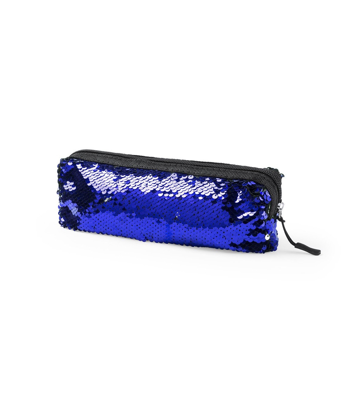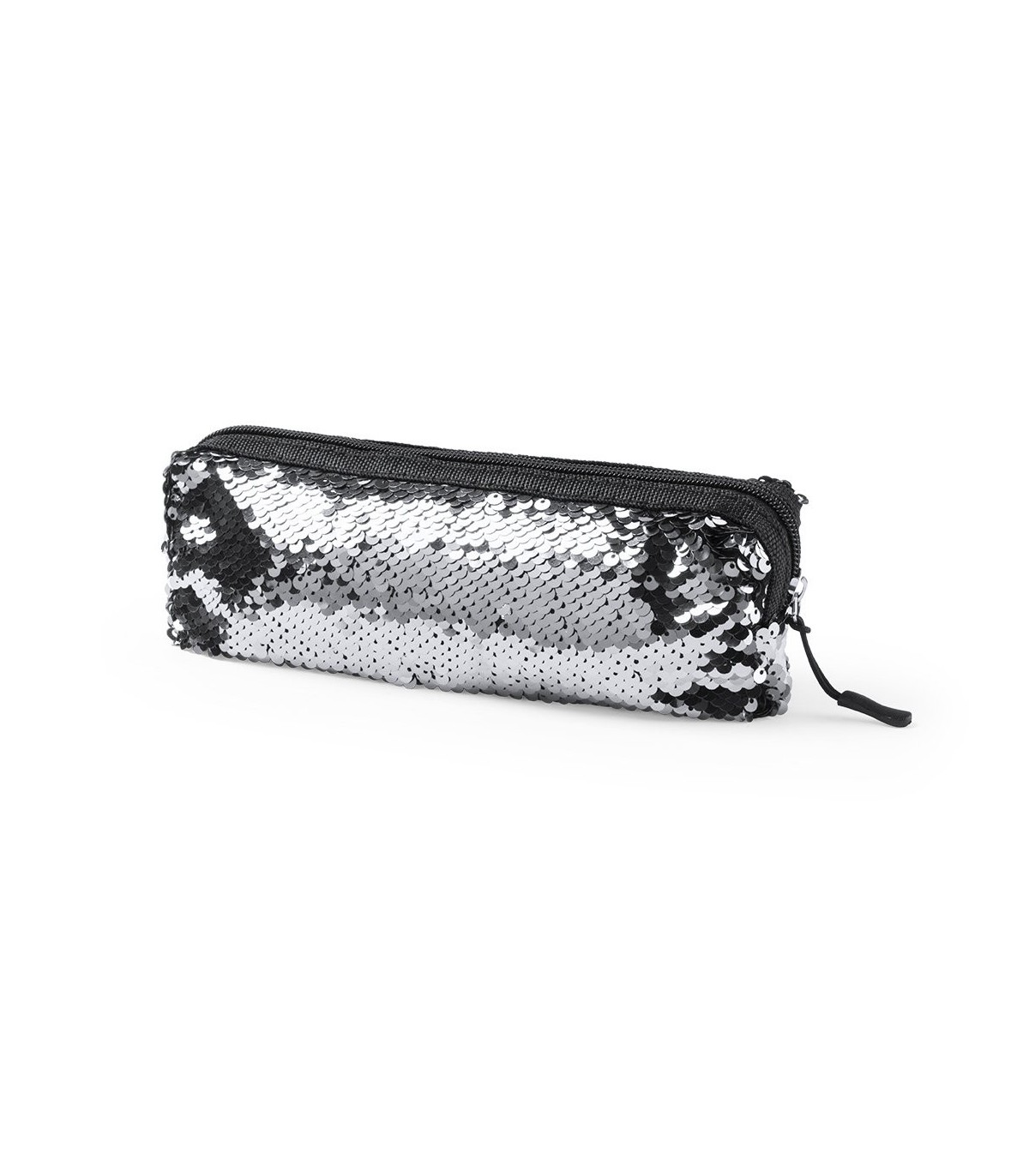 Portatodo de lentejuelas personalizados para regalos de empresa en colores metalizados. Con forro interior en color negro y cómodo tirador para fácil apertura.