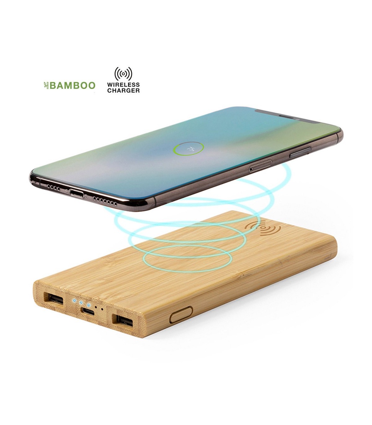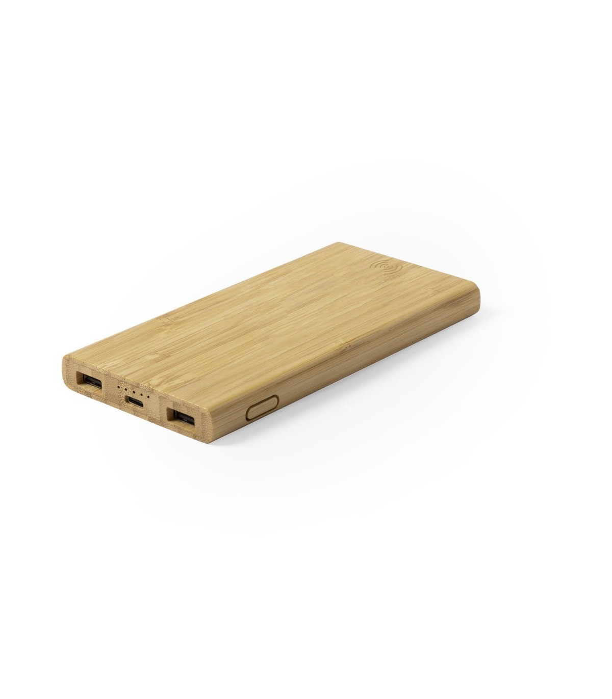 Batería auxiliar externa de línea ecológica con cargador inalámbrico integrado. Carcasa en bambú procedente de cortes naturales. 6.000 mAh de capacidad de carga e indicador de estado de carga. Salida USB doble y entradas Tipo C y Micro USB -cable incluido-. Capacidad de carga de hasta 3 dispositivos simultáneamente. Compatible con dispositivos equipados con tecnología de carga inalámbrica. Amplia superficie de marcaje y presentado en atractiva caja de diseño eco. Las capacidades mostradas en todas nuestras baterías auxiliares externas son reales, incorporando todas ellas baterías de grado A y no recicladas, con una vida útil de al menos 500 ciclos de carga y según normativa CE. Además, están fabricadas conforme a los estándares RoHS y en cumplimiento con los siguientes requisitos de seguridad: Sistema de protección contra sobrecarga del power bank. Sistema de protección contra descarga completa que proporciona una mayor durabilidad del power bank. Sistema de bloqueo para evitar cortocircuitos. Sistema de transferencia de carga constante, acorde con la capacidad del dispositivo de destino.