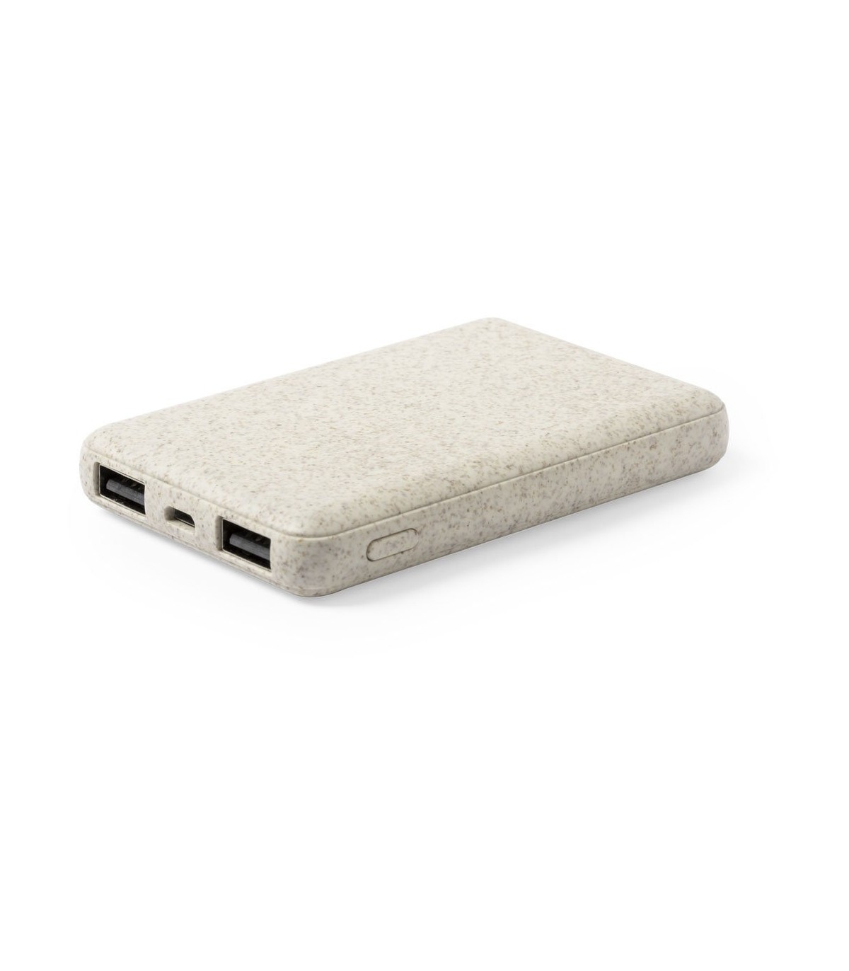 Batería auxiliar externa de línea ecológica de tamaño ultra compacto, con carcasa en caña de trigo, para así fomentar la utilización de materias primas naturales y reducir las emisiones contaminantes. 5.000 mAh de capacidad de carga e indicador de estado de carga. Salida USB dual para carga simultánea de 2 dispositivos y entrada micro USB -cable incluido-. Con amplia superficie de marcaje y presentado en atractiva caja de diseño eco. Las capacidades mostradas en todas nuestras baterías auxiliares externas son reales, incorporando todas ellas baterías de grado A y no recicladas, con una vida útil de al menos 500 ciclos de carga y según normativa CE. Además, están fabricadas conforme a los estándares RoHS y en cumplimiento con los siguientes requisitos de seguridad: Sistema de protección contra sobrecarga del power bank. Sistema de protección contra descarga completa que proporciona una mayor durabilidad del power bank. Sistema de bloqueo para evitar cortocircuitos. Sistema de transferencia de carga constante, acorde con la capacidad del dispositivo de destino.