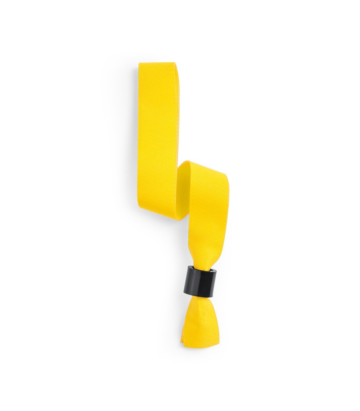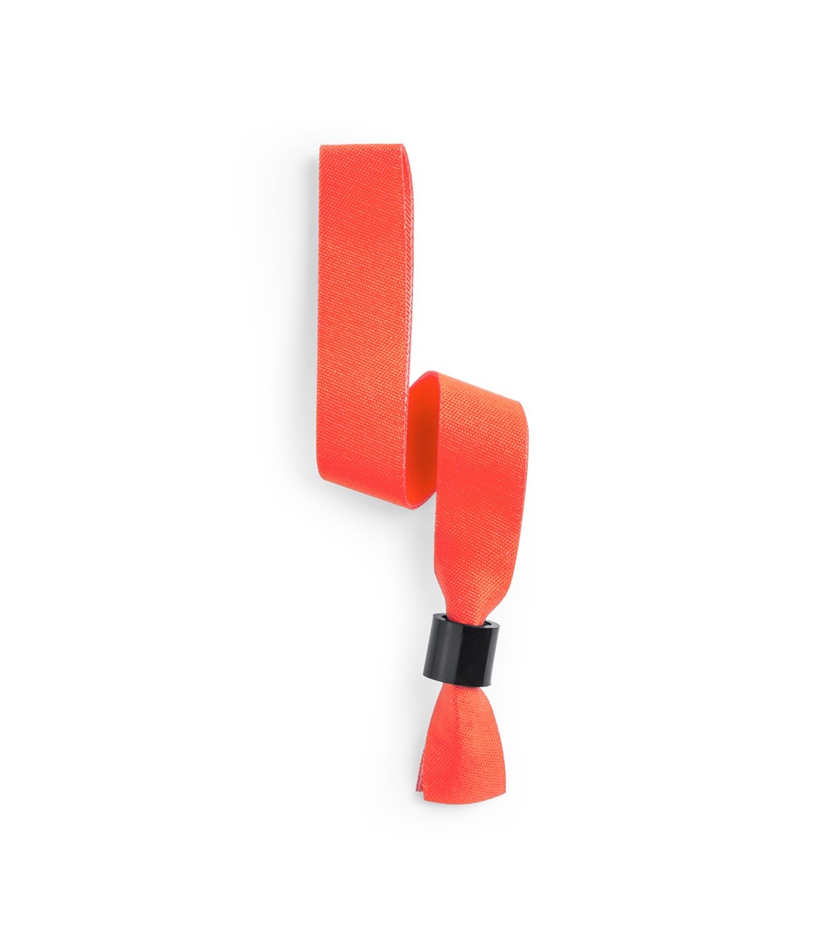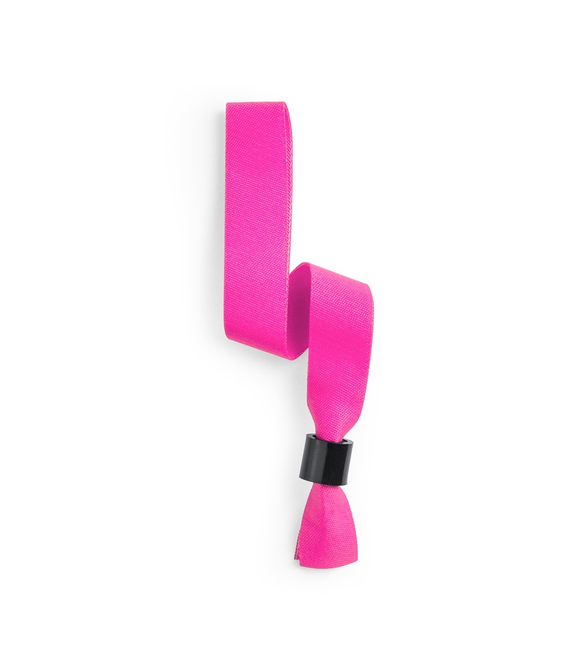 Pulsera con cuerpo acabado en suave poliéster de vivos y varios colores para imprimir. Con cierre de seguridad en color negro. Color blanco especialmente diseñado para marcaje en sublimación.