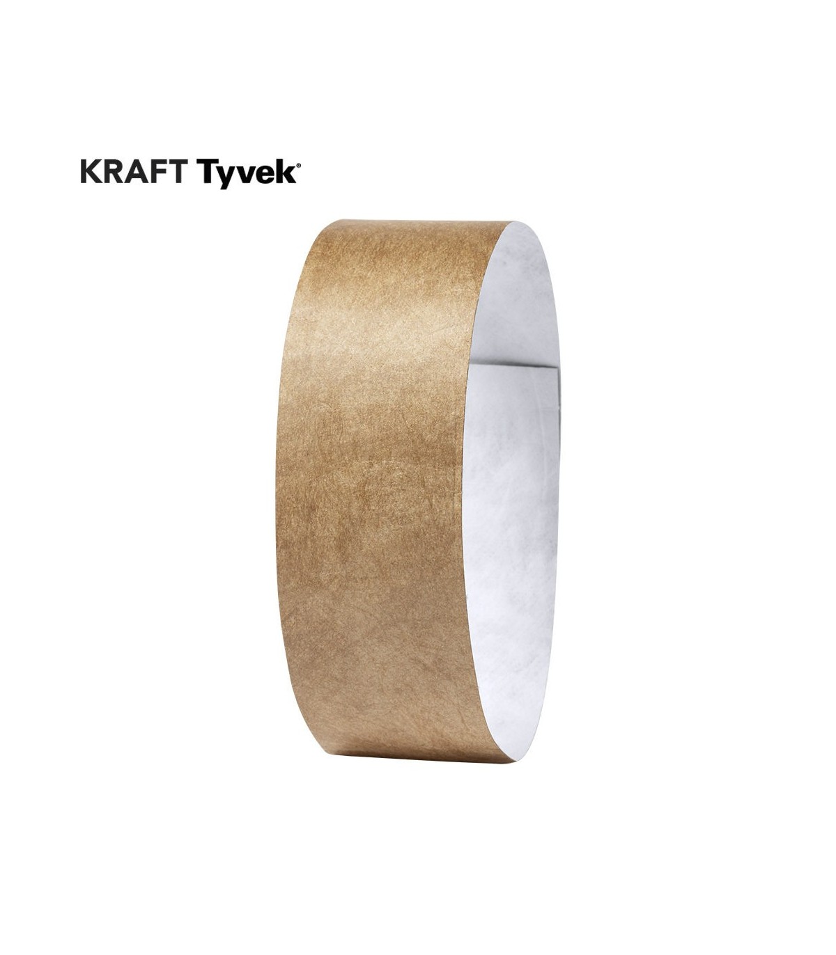 Pulseras para eventos de acabado nature. Fabricada en fibra sintética Tyvek®. Con cierre adhesivo, talla única para adulto. Resistente al agua.