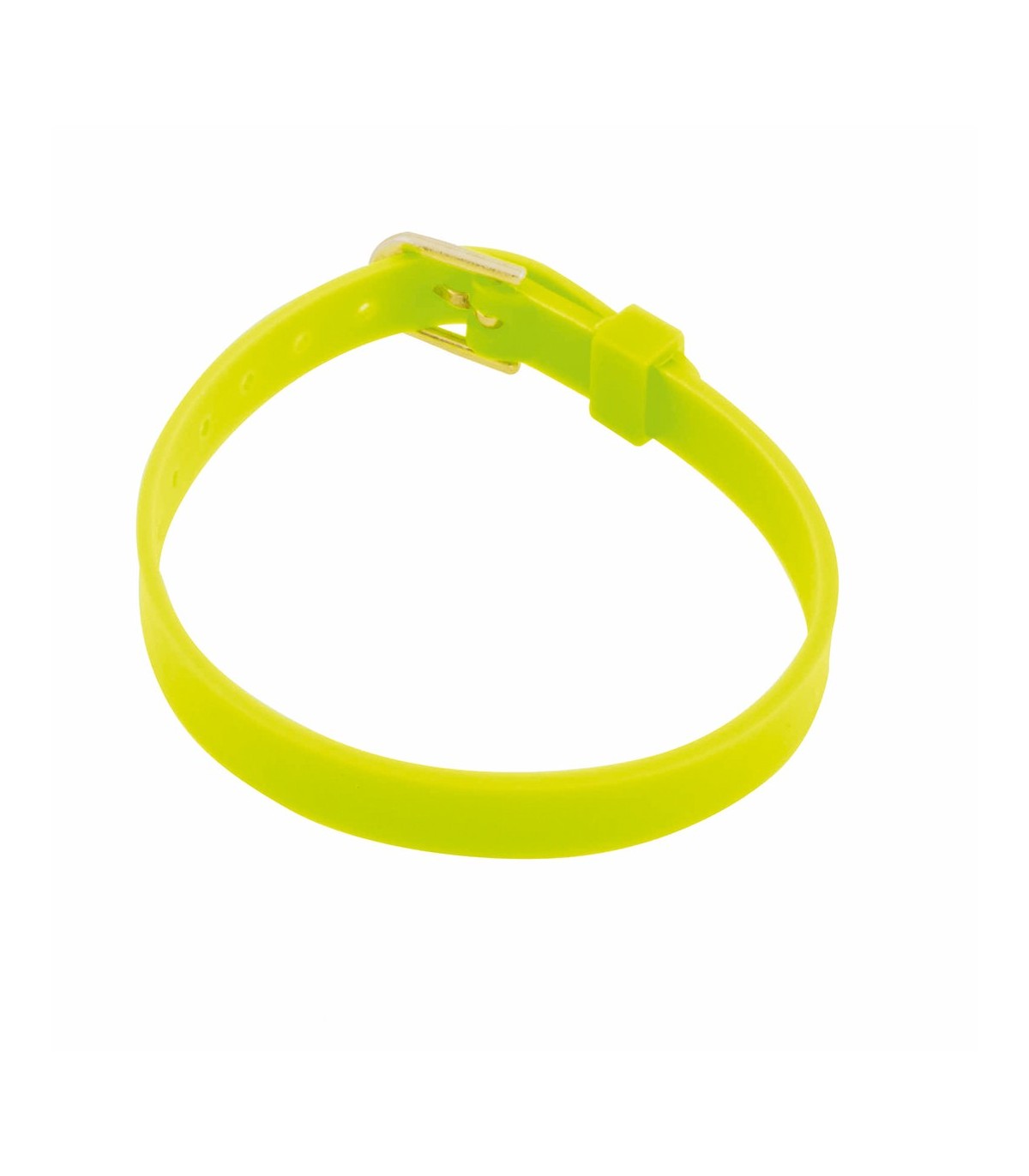 Pulsera de silicona en acabado fluorescente, con cierre ajustable de hebilla personalizar con tu logo y regalar en eventos deportivos o ferias.