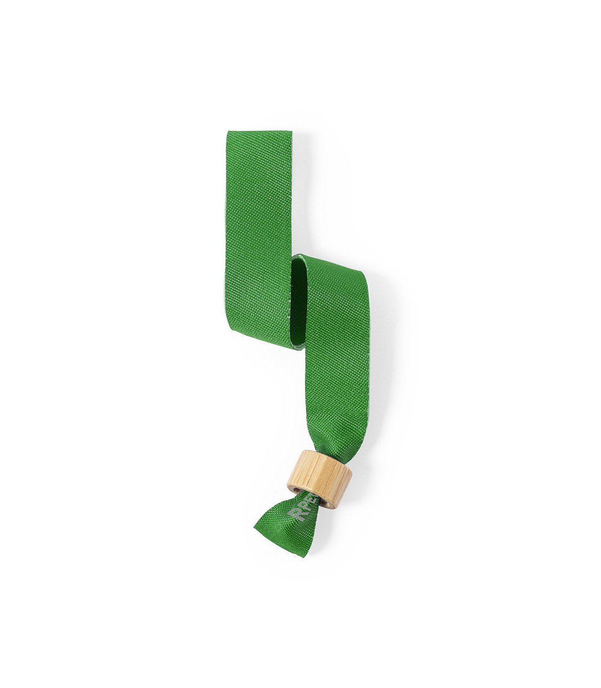 Pulseras para eventos personalizadas Con ajustador en bambú y disponible en variada gama de colores. Distintivo RPET impreso en la pulsera.