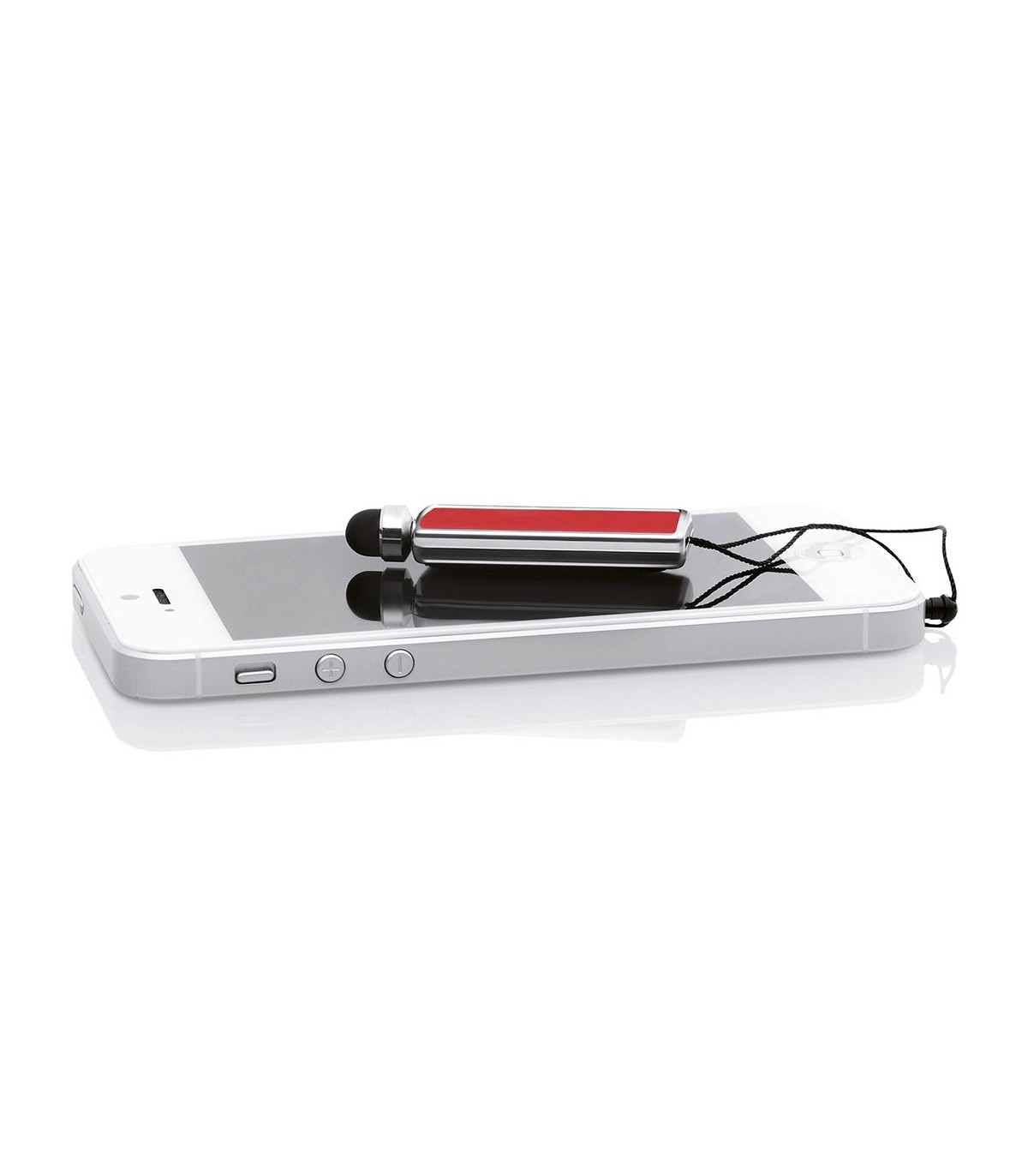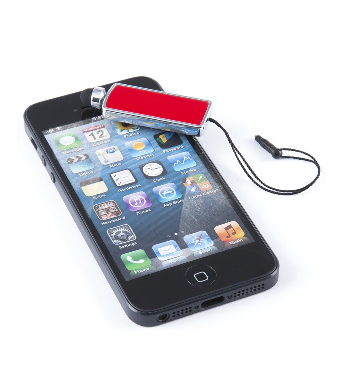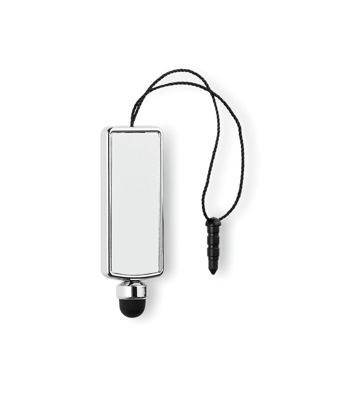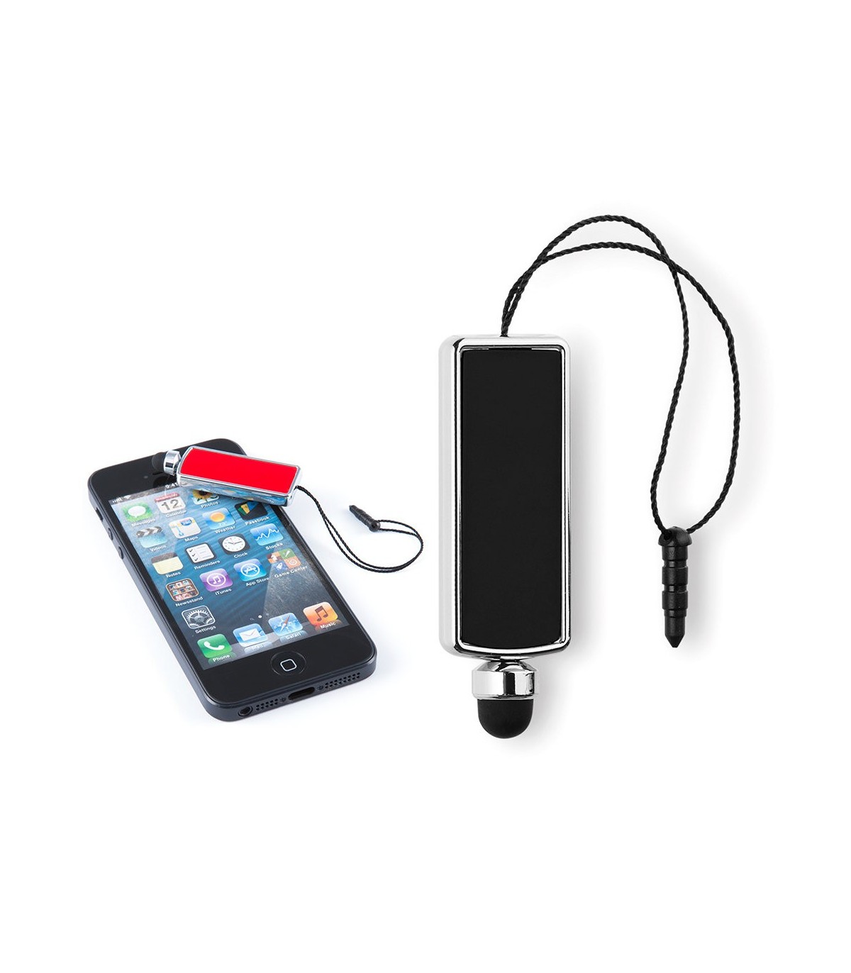 Punteros táctiles rectangulares con limpia pantallas y cordón para el móvil, como regalos promocionales de empresas.