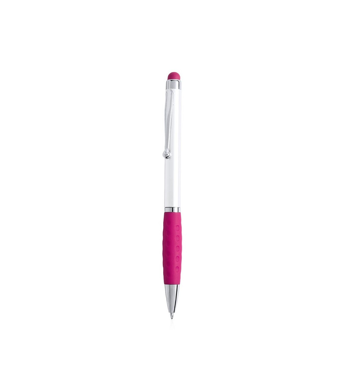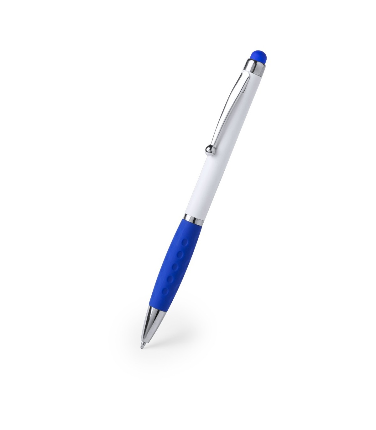 Puntero táctil con punta escritura fina y goma ergonómica para facilitar el manejo, elementos plateados en clic, punta y centro del Bolígrafos. Bolígrafo Puntero Sagurwhite.