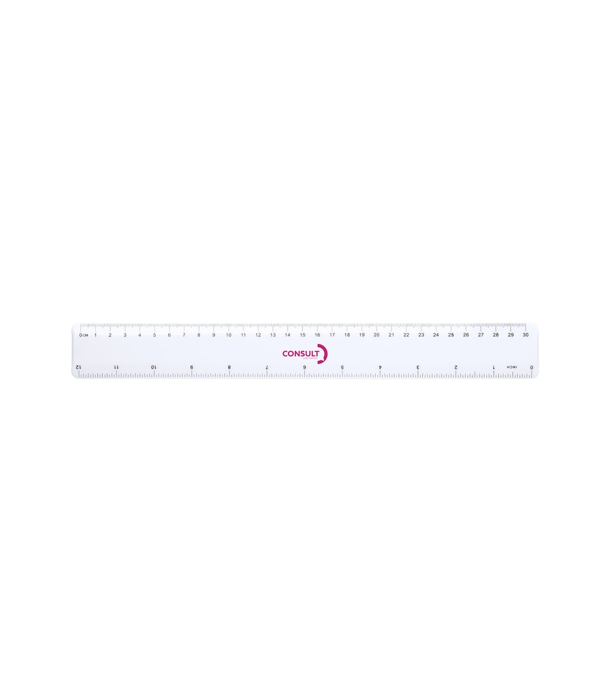 Reglas antibacteriana de 30cm personalizadas con tu logo, con cuerpo en acabado sólido. Sistema métrico en centímetros y pulgadas.