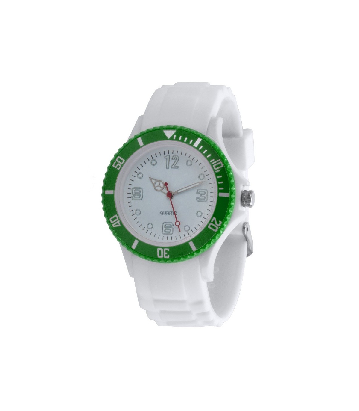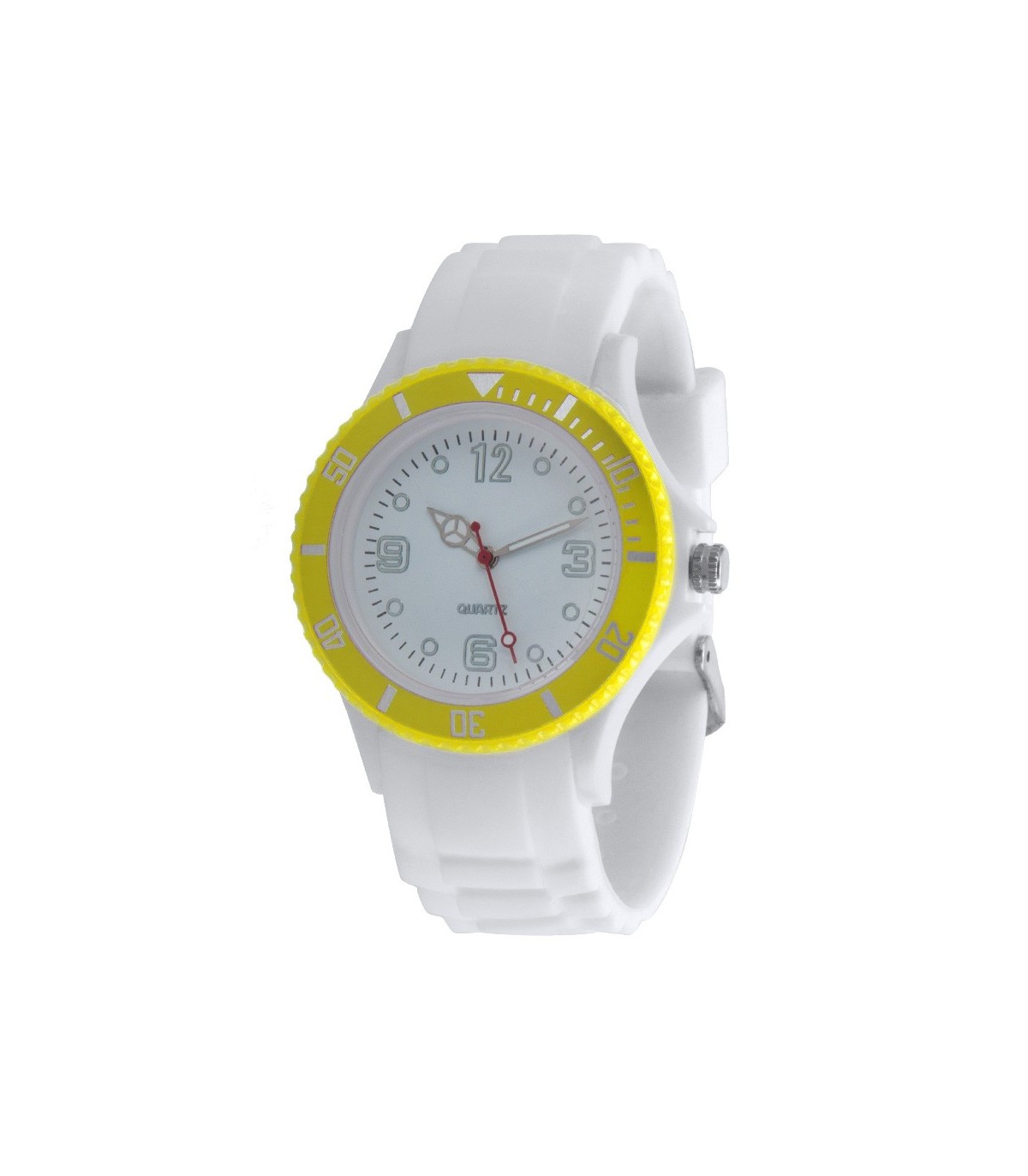 Reloj cronógrafo con correa de silicona de color blanco y acabado en la parte superior con diferentes colores , dial analógico personalizadas para regalos de empresa.