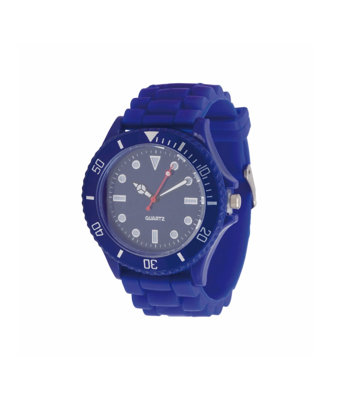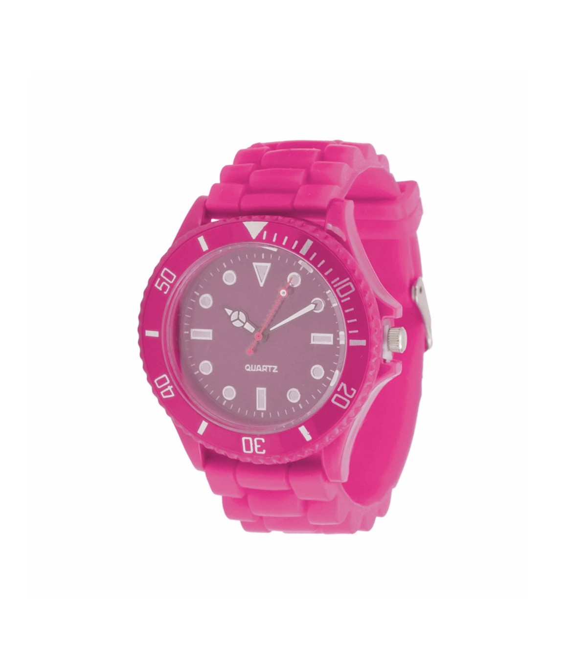 Reloj cronógrafo de pulsera en original acabado de vivos colores. Con cronógrafo, dial analógico y pulsera de silicona a juego. Resistente a salpicaduras de agua. Presentado en bolsa individual.