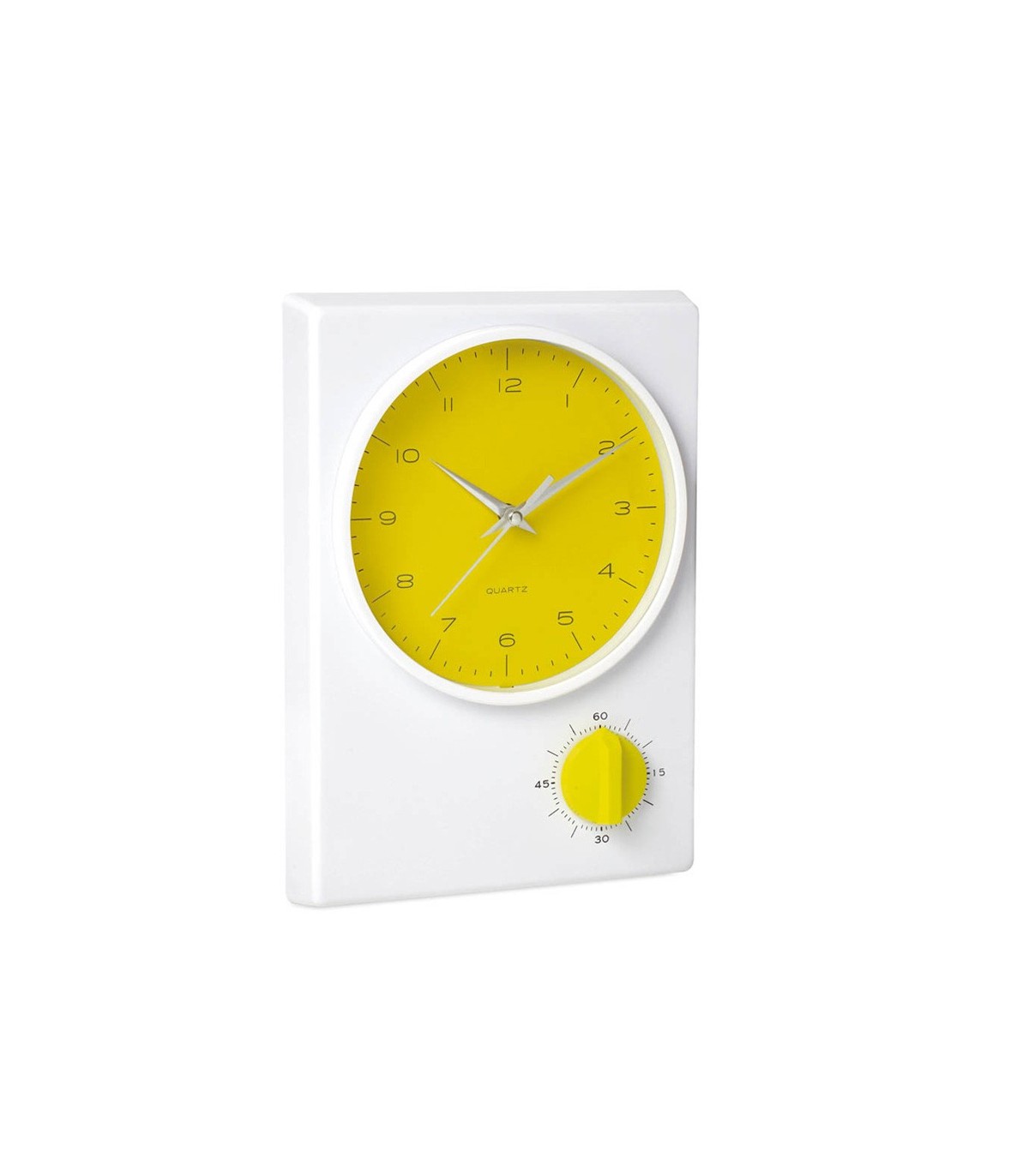 Reloj analógico de pared de dial circular con temporizador integrado de hasta una hora. Dial en diferentes colores muy originales a juego con mando de temporizador. Alimentación a pila: 1x AA no incluida y presentado en caja individual.