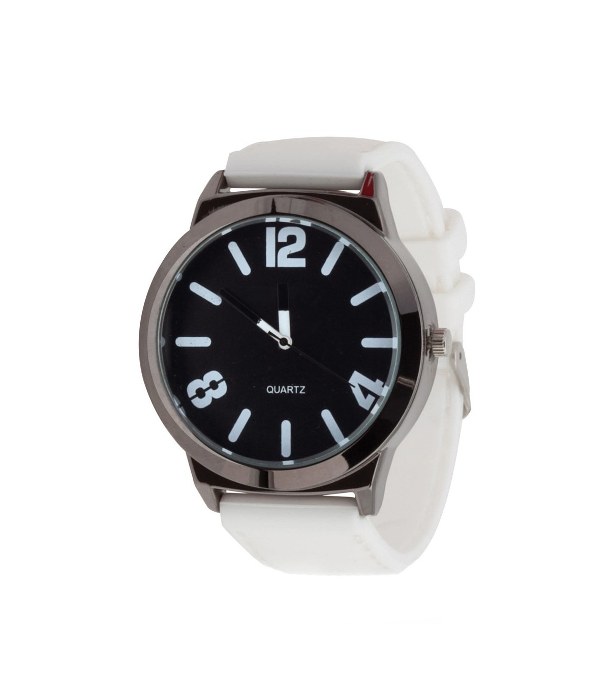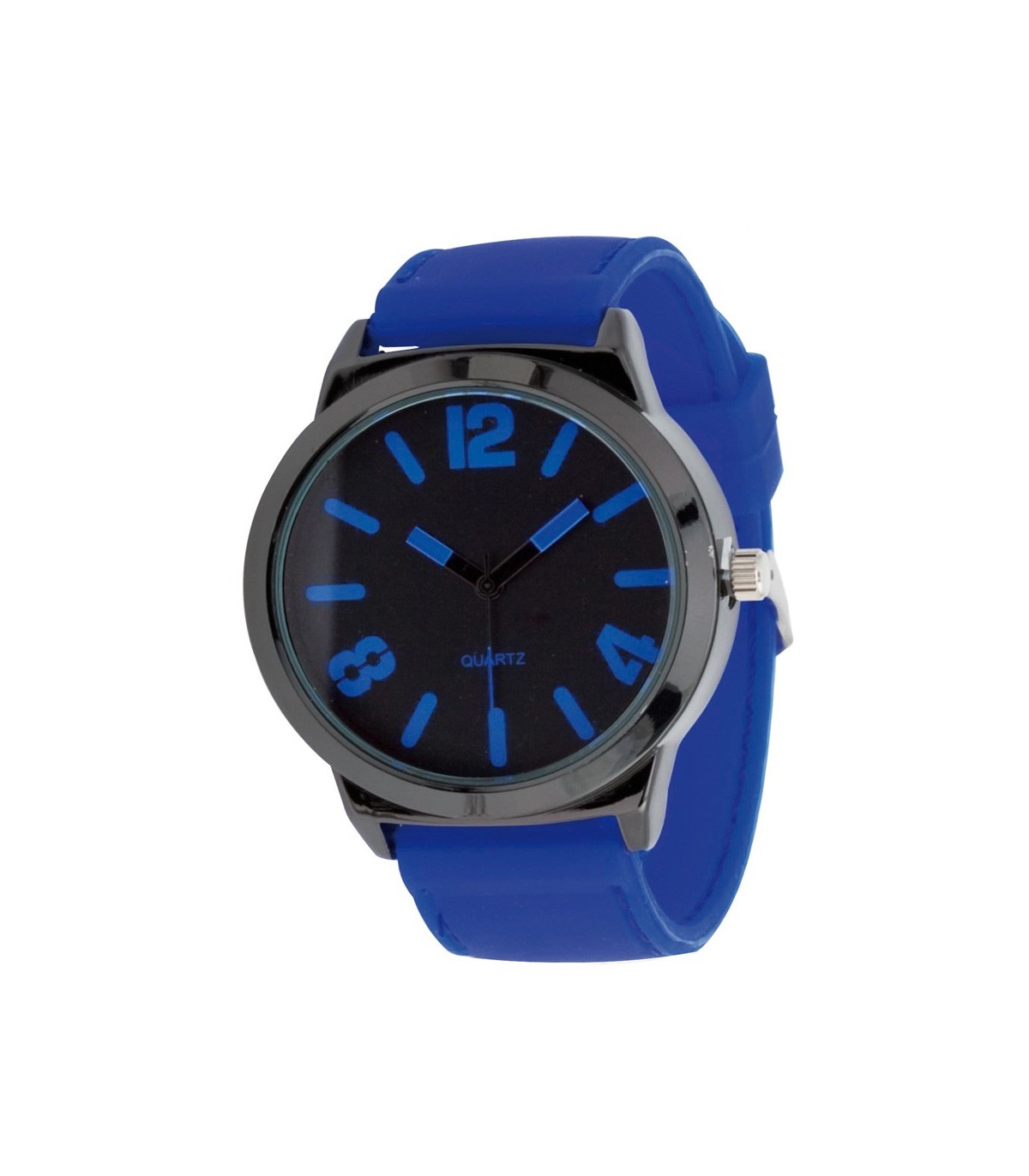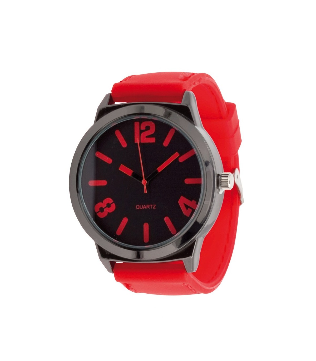 Reloj de pulsera de desenfadado diseño con caja metálica de dial analógico circular resistente a salpicaduras de agua. En alegres colores y con correa ajustable en silicona de cierre de hebilla. Presentado en bolsa individual con cartulina de refuerzo.