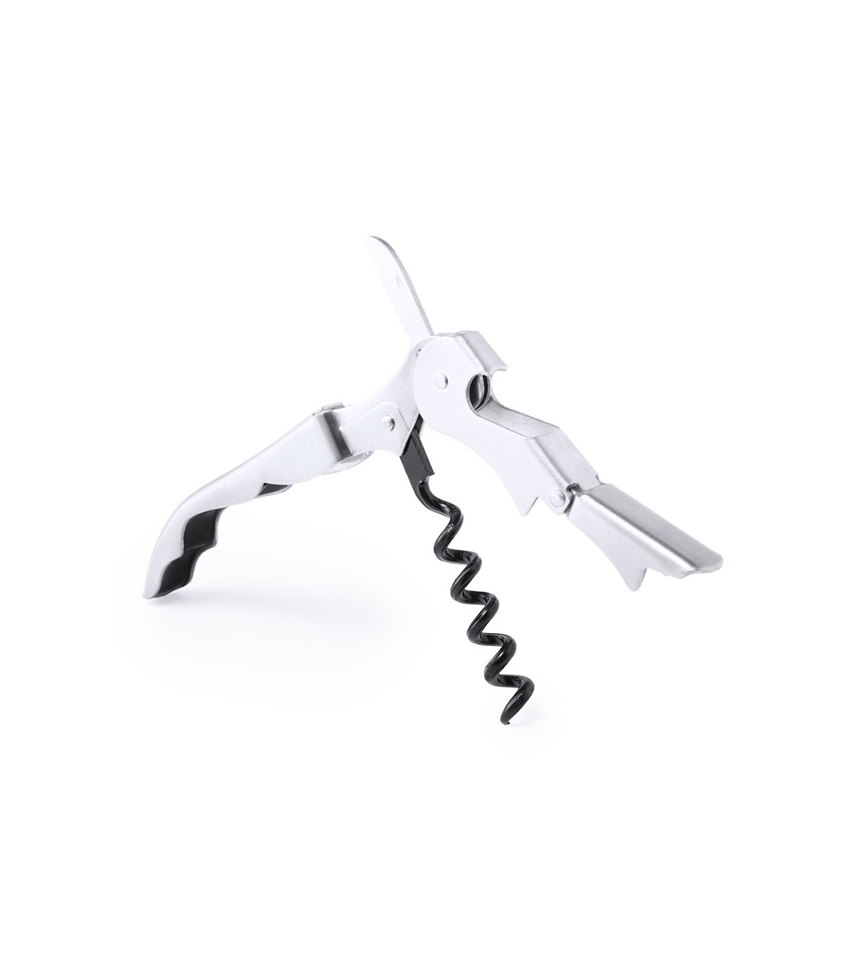 Original sacacorchos en acero inox en diseño monocolor. De dos tiempos, con acabo elegante ideales para regalos publicitarios de empresa con tu logo.