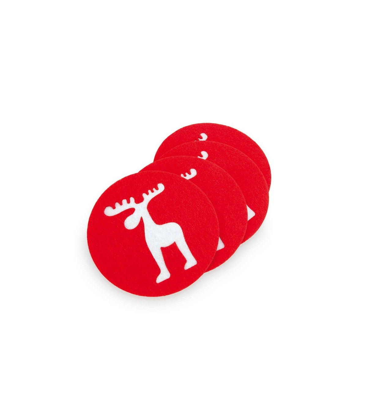Set de 4 posavasos en suave y resistente fieltro con diseños troquelados de reno.