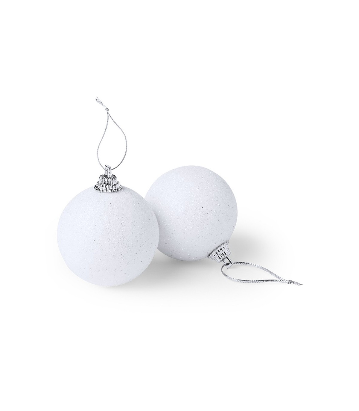 Set de 6 bolas de navidad para colgar en variada gama de vivos colores metalizados. Presentación en bolsita individual con tira de marcaje en color blanco y en colores surtidos.