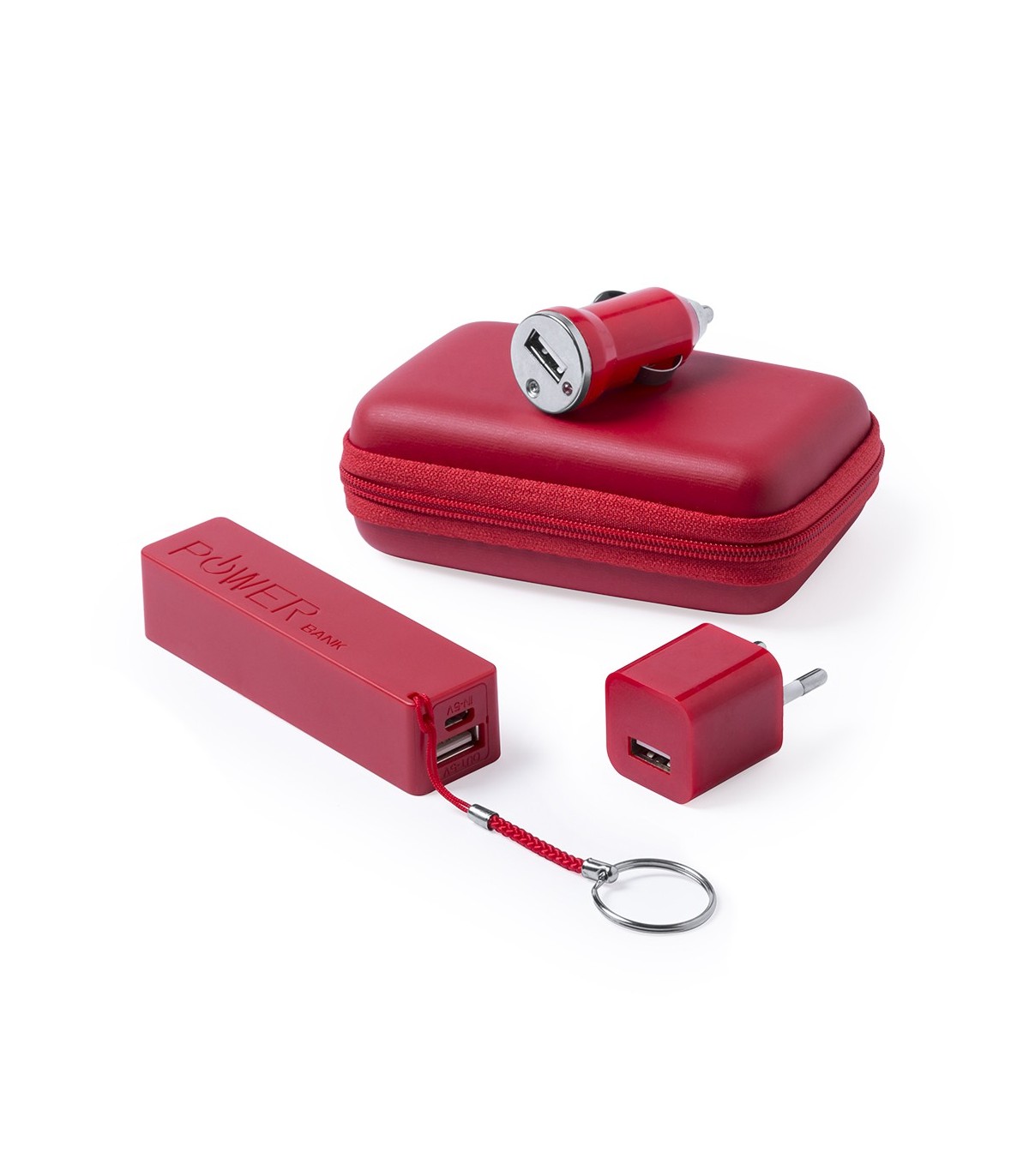 Set de batería auxiliar externa de 2.200 mAh de capacidad de carga, cargador de coche y cargador de pared, ambos de 1.000 mA, en llamativos colores y presentados en resistente estuche de polipiel con colores a juego. Con cable micro USB y llavero de transporte también a juego. Las capacidades mostradas en todas nuestras baterías auxiliares externas son reales, incorporando todas ellas baterías de grado A y no recicladas, con una vida útil de al menos 500 ciclos de carga y según normativa CE. Además, están fabricadas conforme a los estándares RoHS y en cumplimiento con los siguientes requisitos de seguridad: Sistema de protección contra sobrecarga del power bank. Sistema de protección contra descarga completa que proporciona una mayor durabilidad del power bank. Sistema de bloqueo para evitar cortocircuitos. Sistema de transferencia de carga constante, acorde con la capacidad del dispositivo de destino.