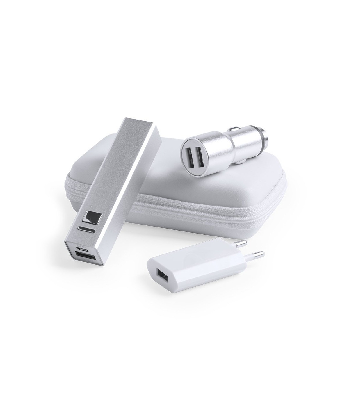 Set de batería auxiliar externa de 2.200 mAh de capacidad de carga, cargador de coche con salida de carga dual USB de 2.100 mA y cargador de pared de 1.000 mA. En resistente aluminio de acabado metalizado, con accesorio rompe cristales en cargador para el coche presentados en resistente y elegante estuche de polipiel en color blanco. Con cable tipo C y dual micro USB/lightning. Las capacidades mostradas en todas nuestras baterías auxiliares externas son reales, incorporando todas ellas baterías de grado A y no recicladas, con una vida útil de al menos 500 ciclos de carga y según normativa CE. Además, están fabricadas conforme a los estándares RoHS y en cumplimiento con los siguientes requisitos de seguridad: Sistema de protección contra sobrecarga del power bank. Sistema de protección contra descarga completa que proporciona una mayor durabilidad del power bank. Sistema de bloqueo para evitar cortocircuitos. Sistema de transferencia de carga constante, acorde con la capacidad del dispositivo de destino.