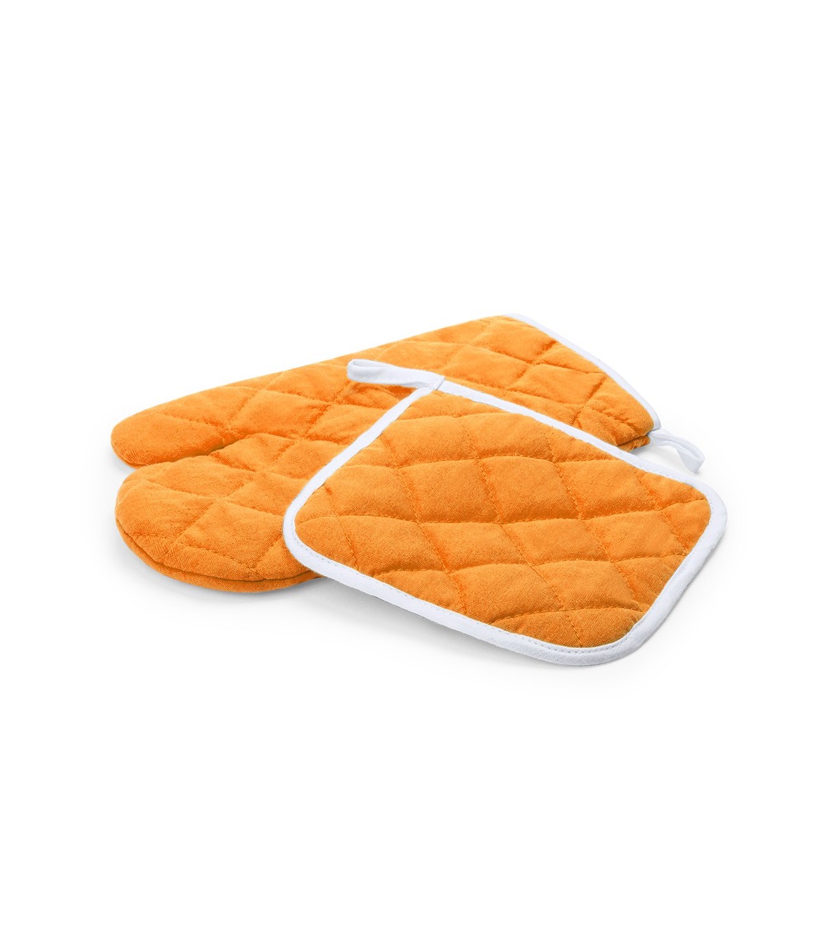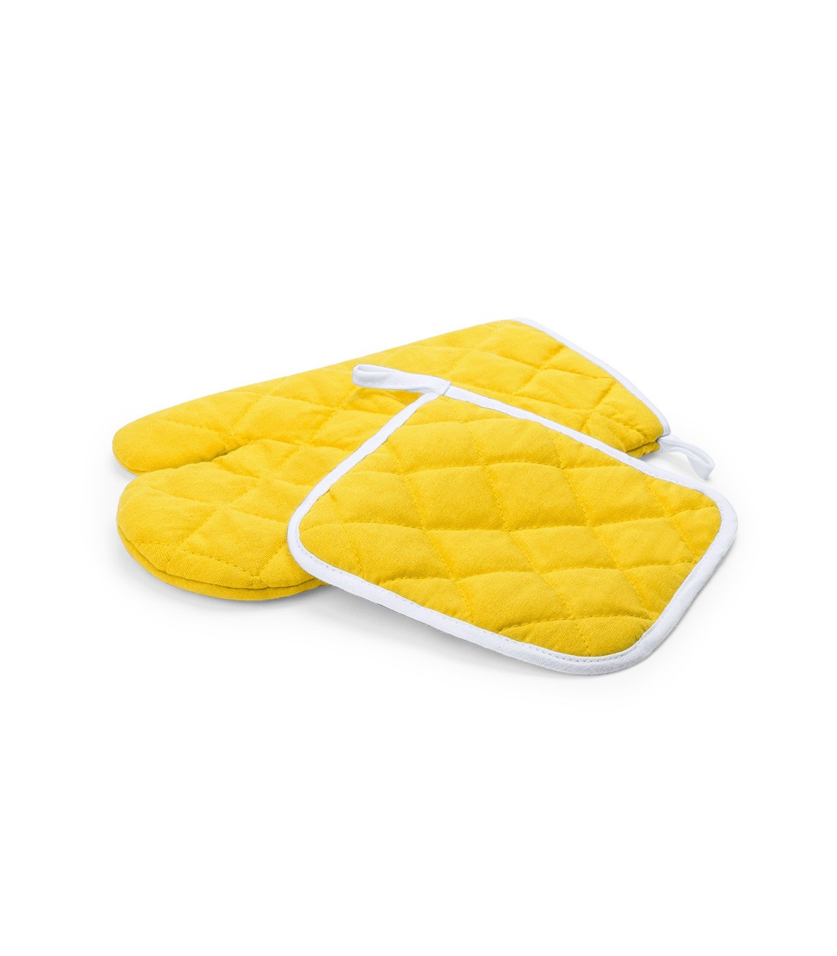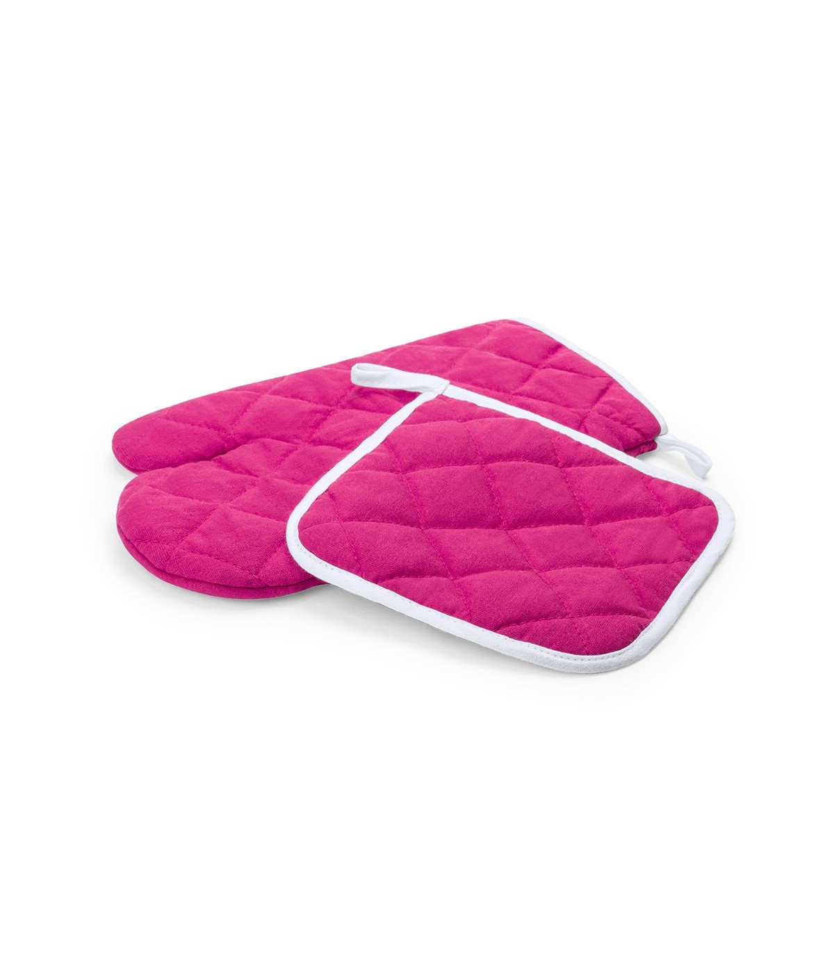 Set de cocina con agarrador y manopla en material TC -combinado de algodón y poliéster-. En variada gama en vivos colores con interior en blanco.
