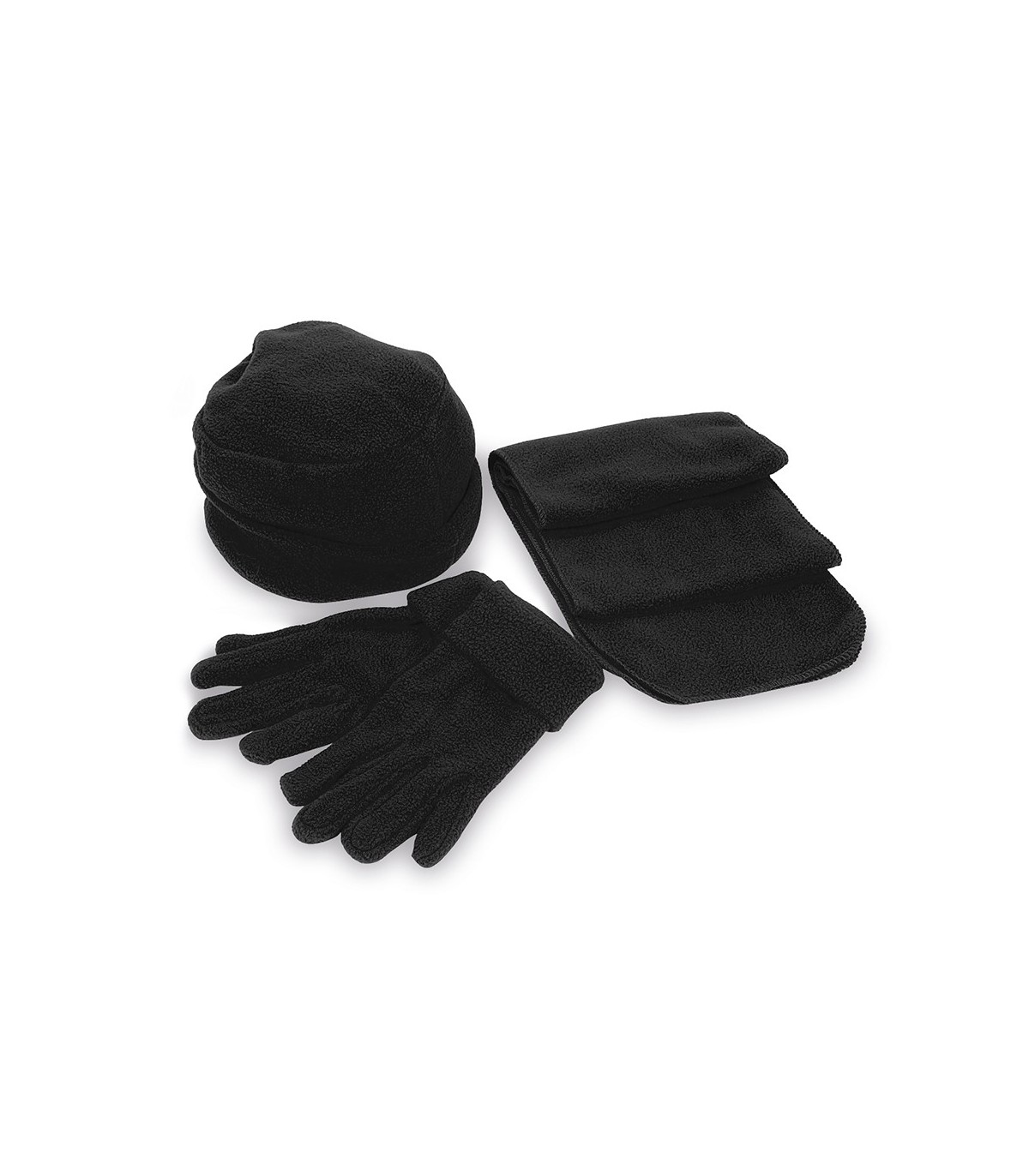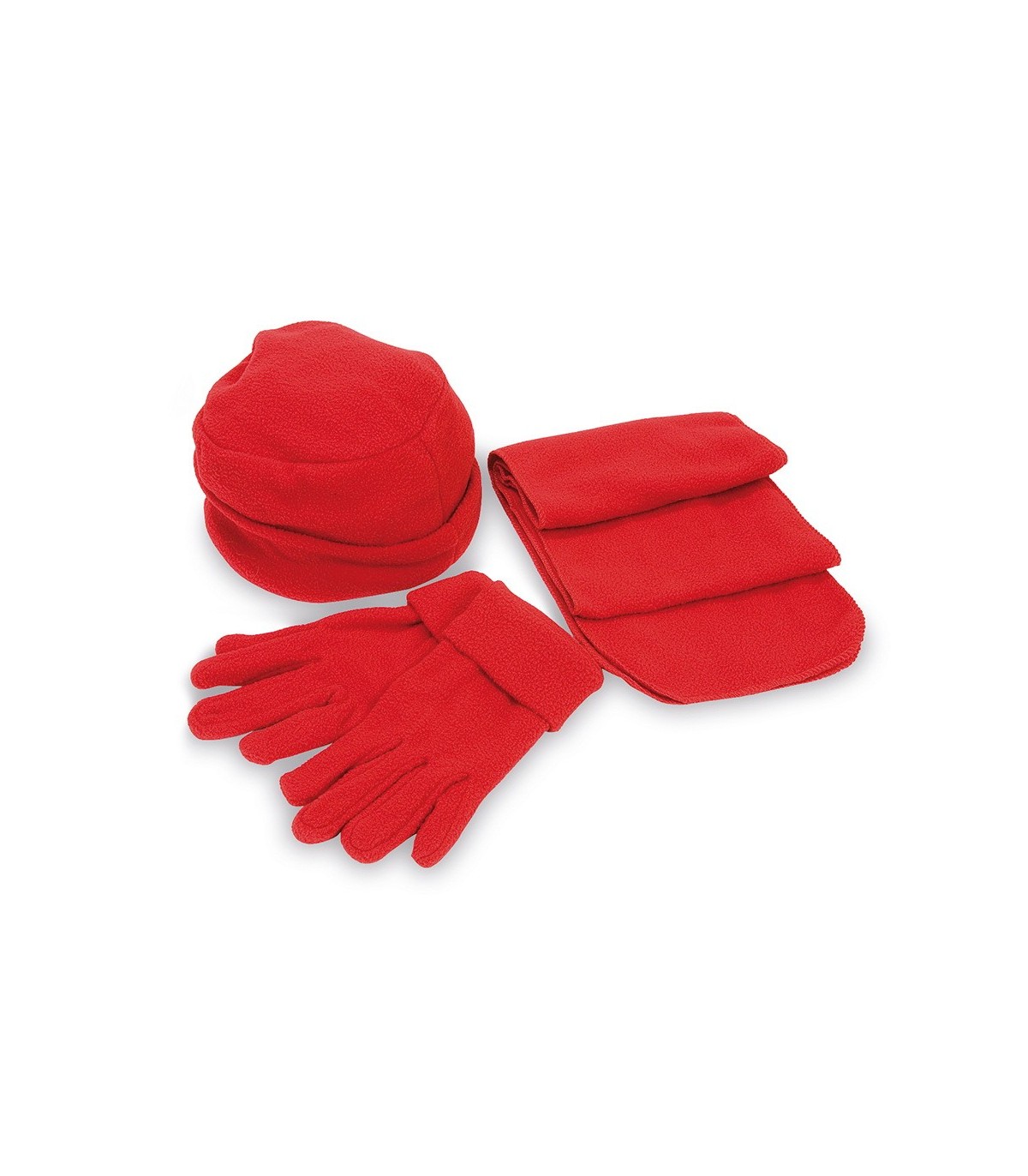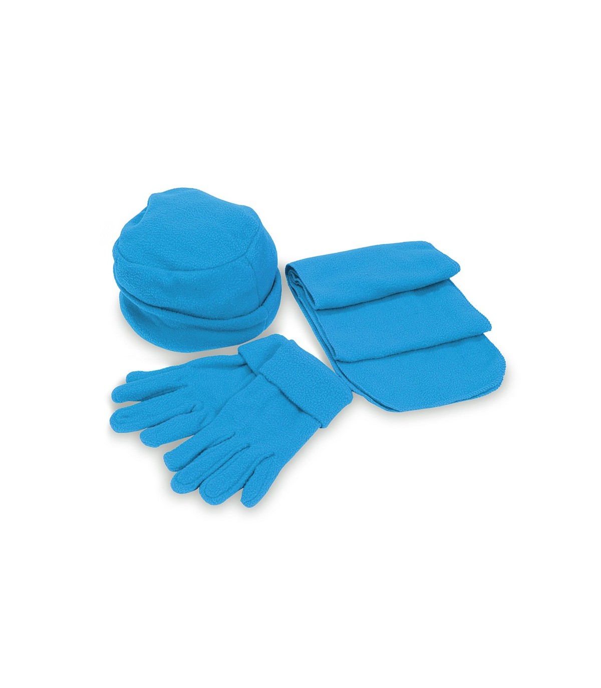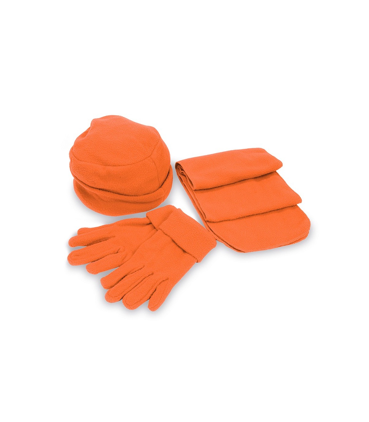 Set de invierno de vivos colores en suave y cálido material polar fleece de 190g/m2. Incluye par de guantes, gorro y bufanda a juego.